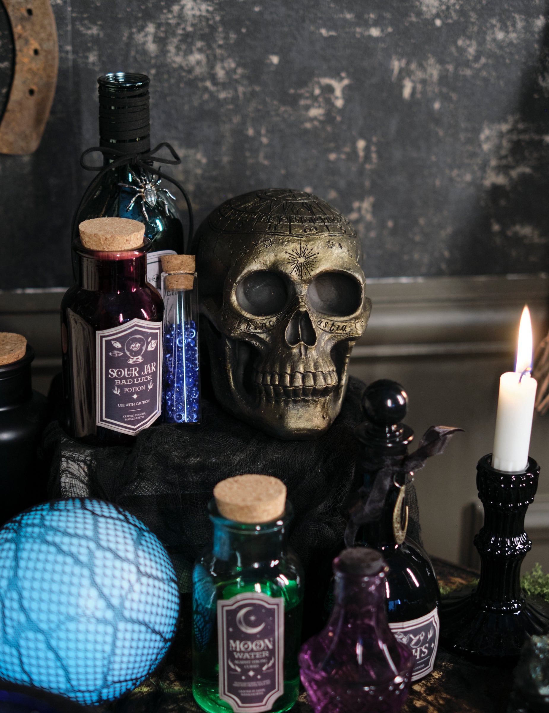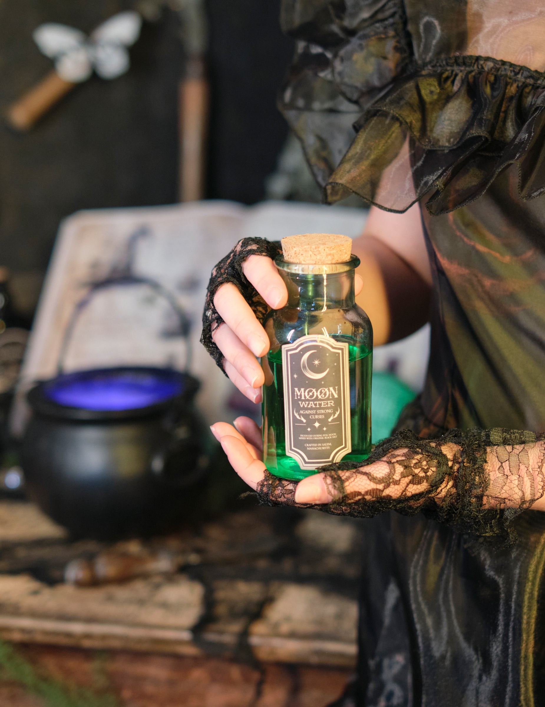 Този зелен "лунна вода" стъклен флакон от 13.5 cm съблазен от своя магически и небесен стил. Облечен с декоративен лунен етикет и затворен със запушалка за корков, той върви перфектно с декор, вдъхновен от древни ритуали. Благодарение на компактния 6.5 cm Широко, той намира своето място в обстановка на Хелоуин, вдъхновена от звездите.