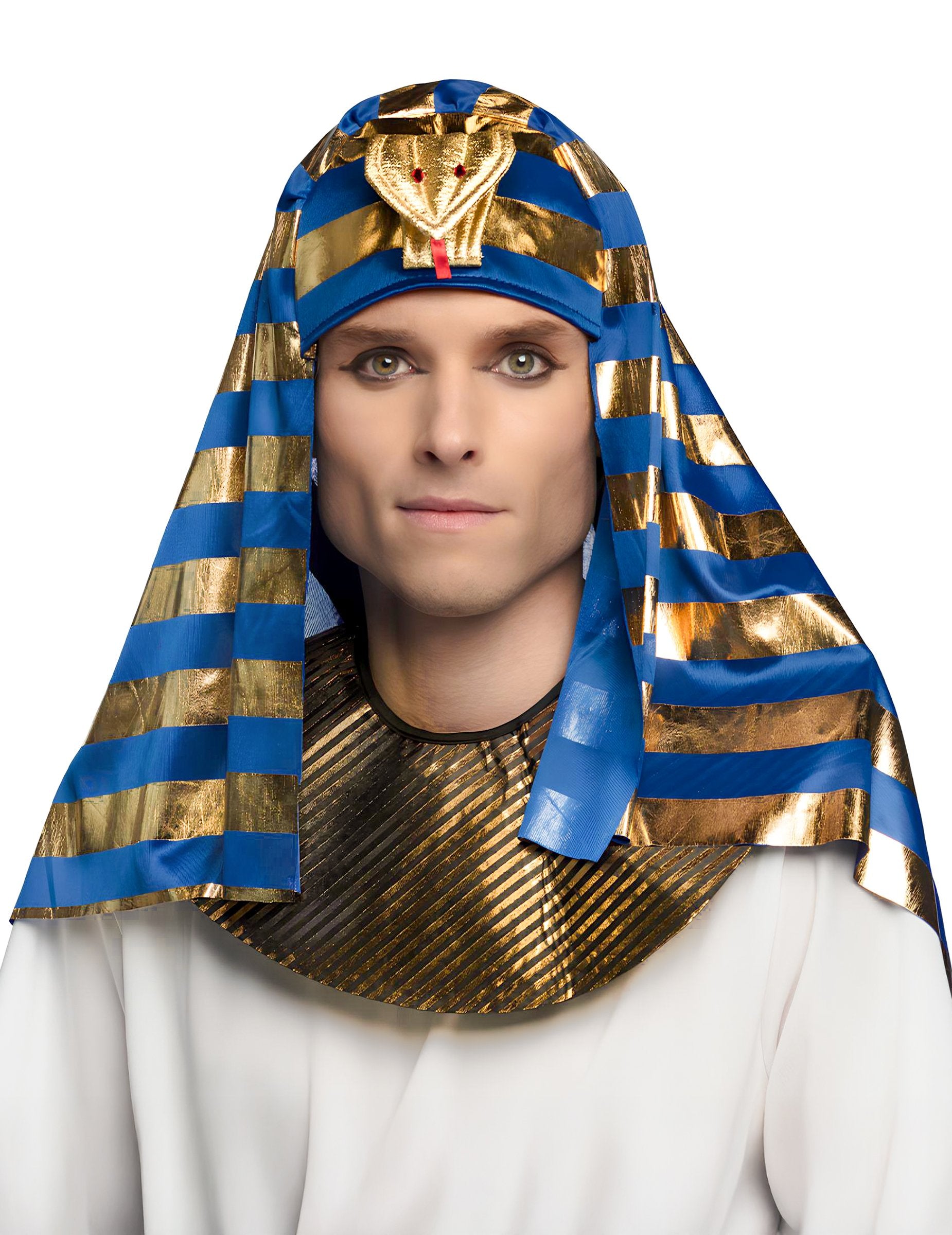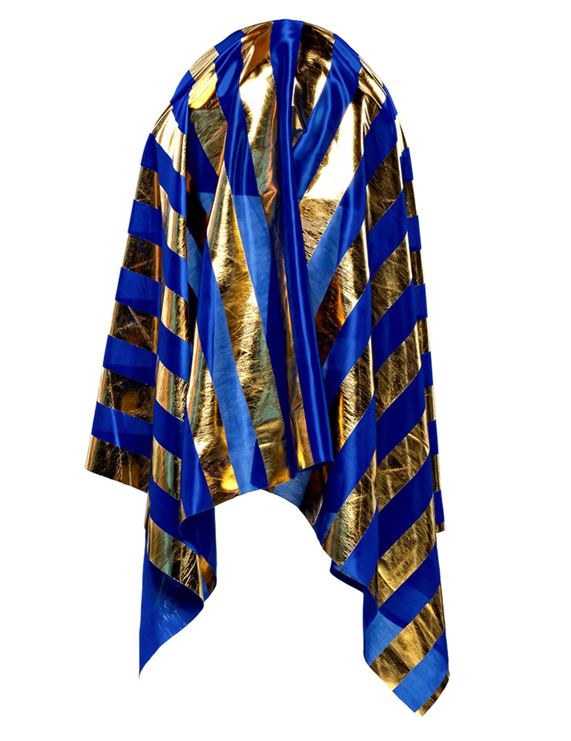 Превърнете се в истински египетски владетел с тази превъзходна фараонова шапка с ярки сини и златни ленти. Украсена със златна кобра на челото, тя добавя величествен и автентичен щрих към вашия костюм. С диаметър приблизително 58 cm, Проектиран е да пасва удобно на повечето възрастни. Идеален е за завършване на египетски костюм, ще бъде перфектен за тематични партита, карнавали, исторически възстановки или маскарадни партита.