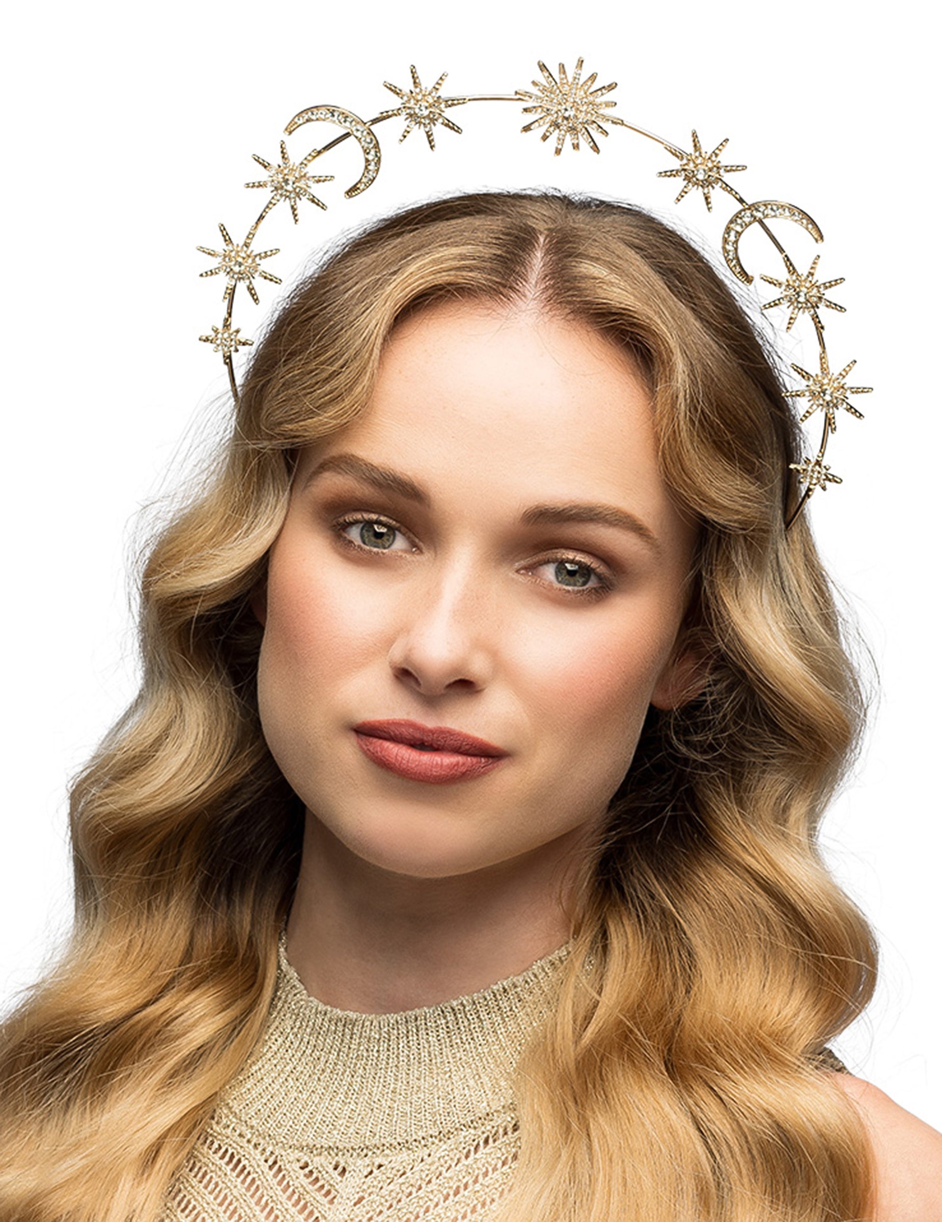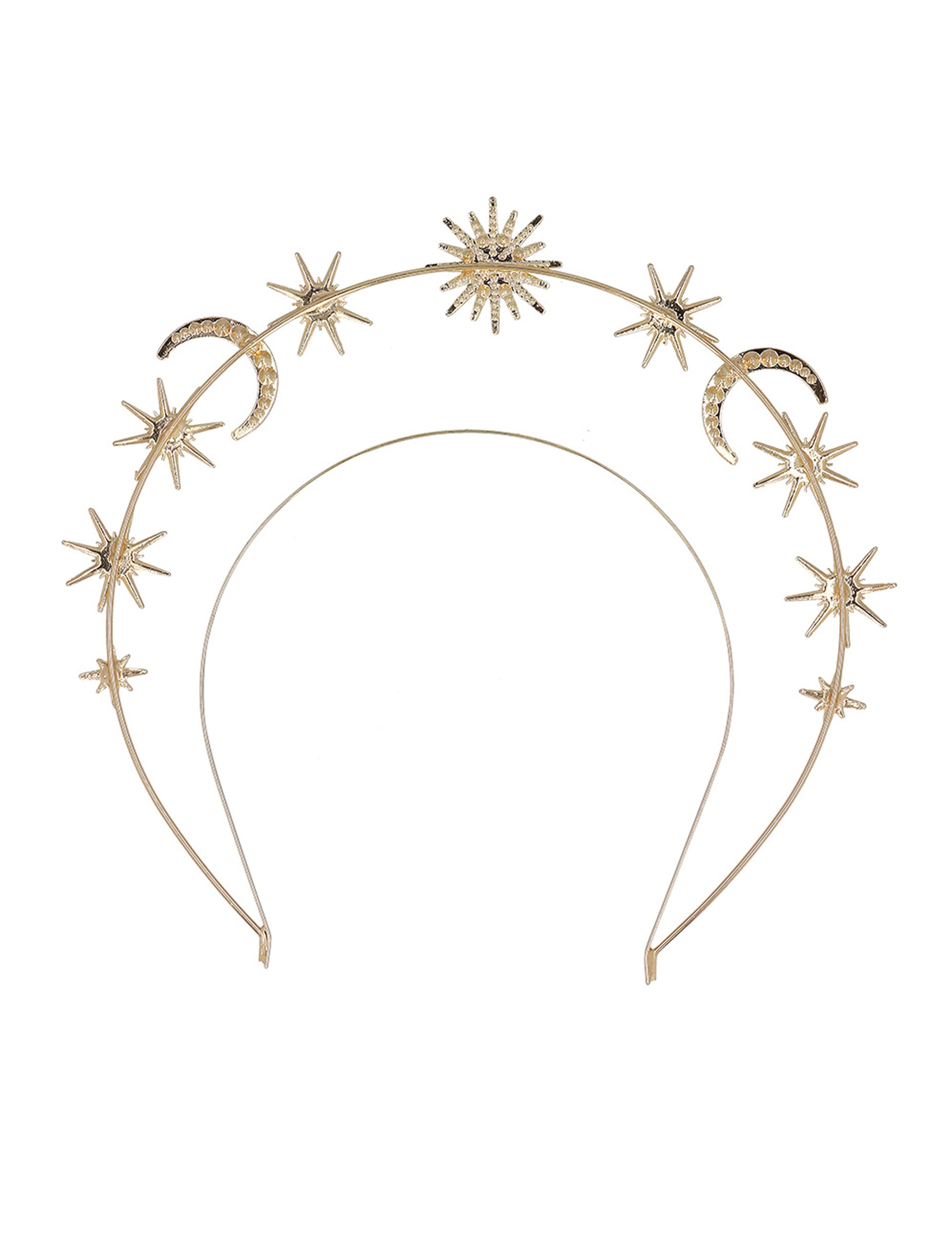 Sublimez votre look avec cette tiare métallique dorée décorée de soleil, lunes et étoiles scintillantes. Légère et confortable, elle se porte facilement et ajoute une touche élégante et originale à votre tenue. Idéale pour un carnaval, une fête déguisée, un mariage bohème, Halloween ou une soirée féérique.