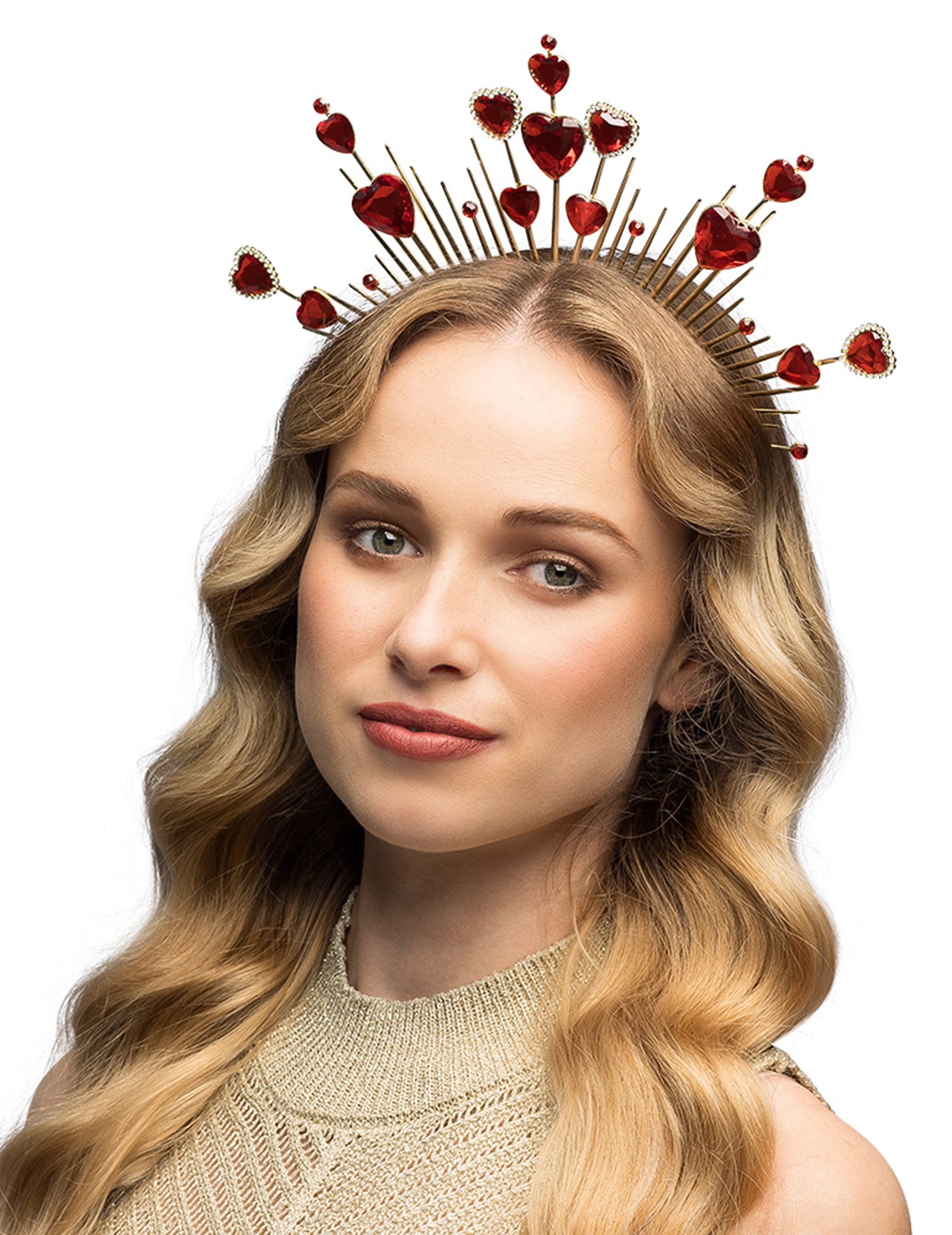 Brillez avec cette tiare métallique dorée décorée de cœurs rouges scintillants. Légère et confortable, elle se porte facilement et apporte une touche élégante et romantique à votre look. Idéale pour la Saint-Valentin, un mariage, un EVJF, un carnaval ou une fête à thème.