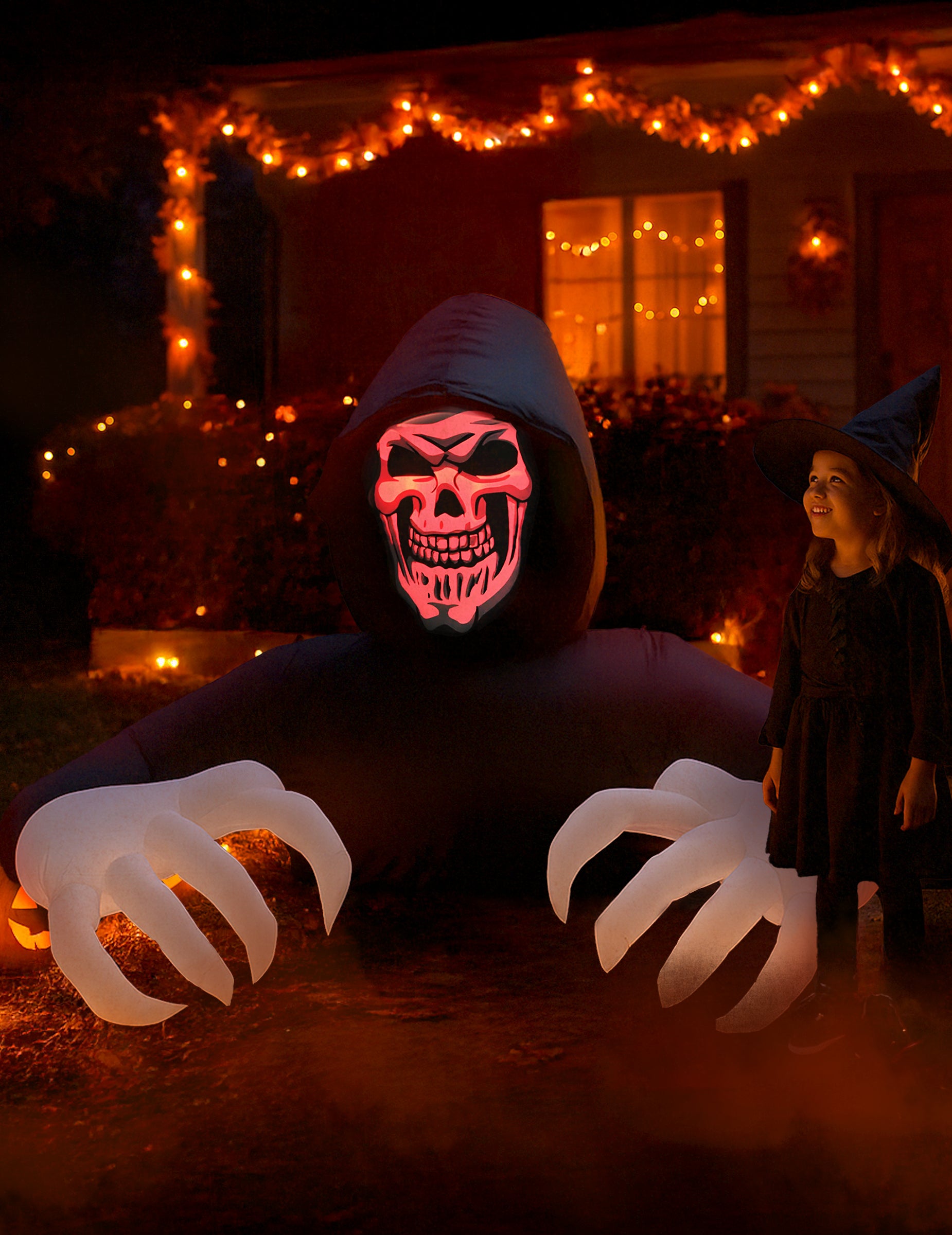 Mettez l’ambiance dans votre jardin avec ce squelette gonflable géant de 2,10 m à la tête rouge inquiétante. Grâce à son projecteur LED intégré, il s’illumine la nuit pour créer une atmosphère effrayante et impressionner vos invités. Conçu en matériau résistant, il se gonfle rapidement et reste stable une fois installé. Avec ses dimensions d’environ 210 x 130 x 157 cm, il devient une véritable pièce maîtresse de votre décor d’Halloween.