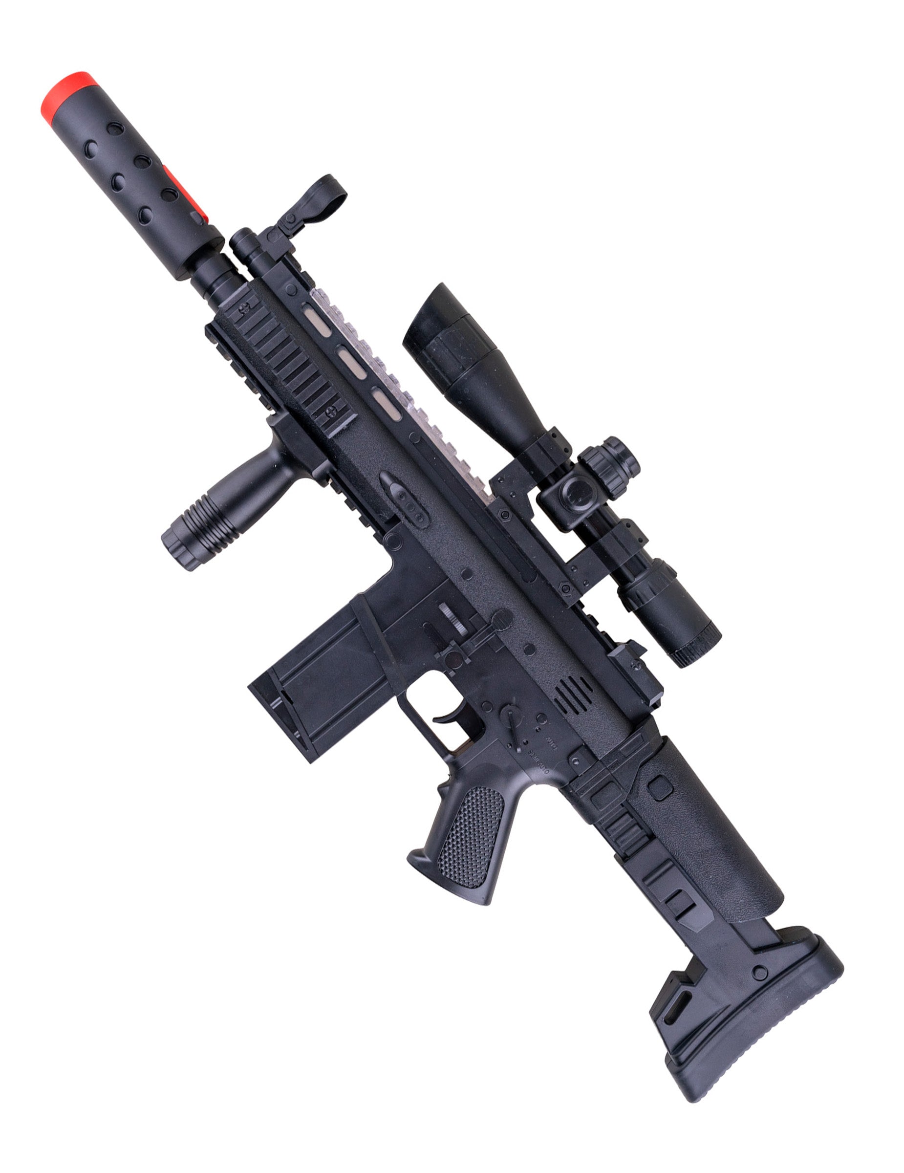 Cette mitrailleuse factice combine effets lumineux, sonores et fumée pour plonger les enfants dans une ambiance de combat réaliste. Facile à utiliser, elle fonctionne avec 3 piles AA (non incluses) et promet des heures de jeu immersif. Parfaite pour les jeux de rôle, déguisements militaires ou fêtes costumées, elle complète idéalement un costume de soldat.