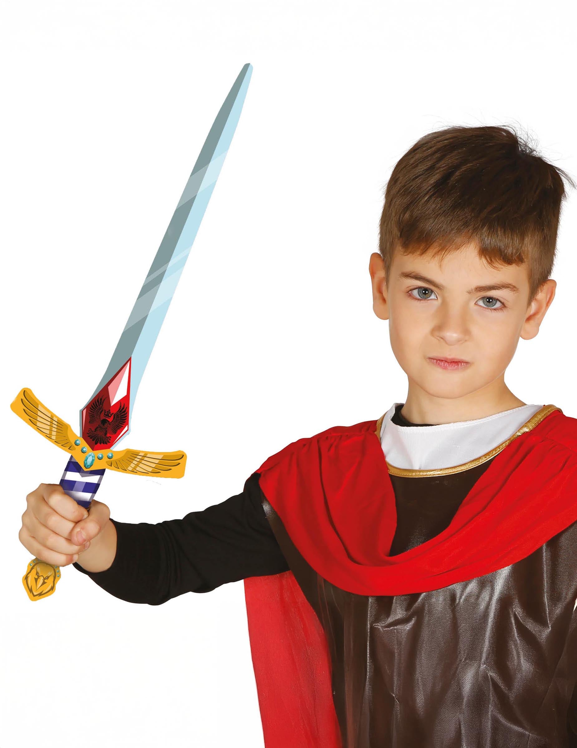 Offrez à votre enfant une arme de héros avec cette épée de chevalier en mousse EVA. Légère et maniable, elle permet de compléter un déguisement médiéval tout en garantissant la sécurité des plus jeunes. Son design travaillé, avec garde dorée et détails colorés, ajoute une touche réaliste à leurs aventures. Idéale pour Halloween, le carnaval, les fêtes costumées ou les jeux de rôle, cette épée est l’accessoire parfait pour se plonger dans l’univers des chevaliers.