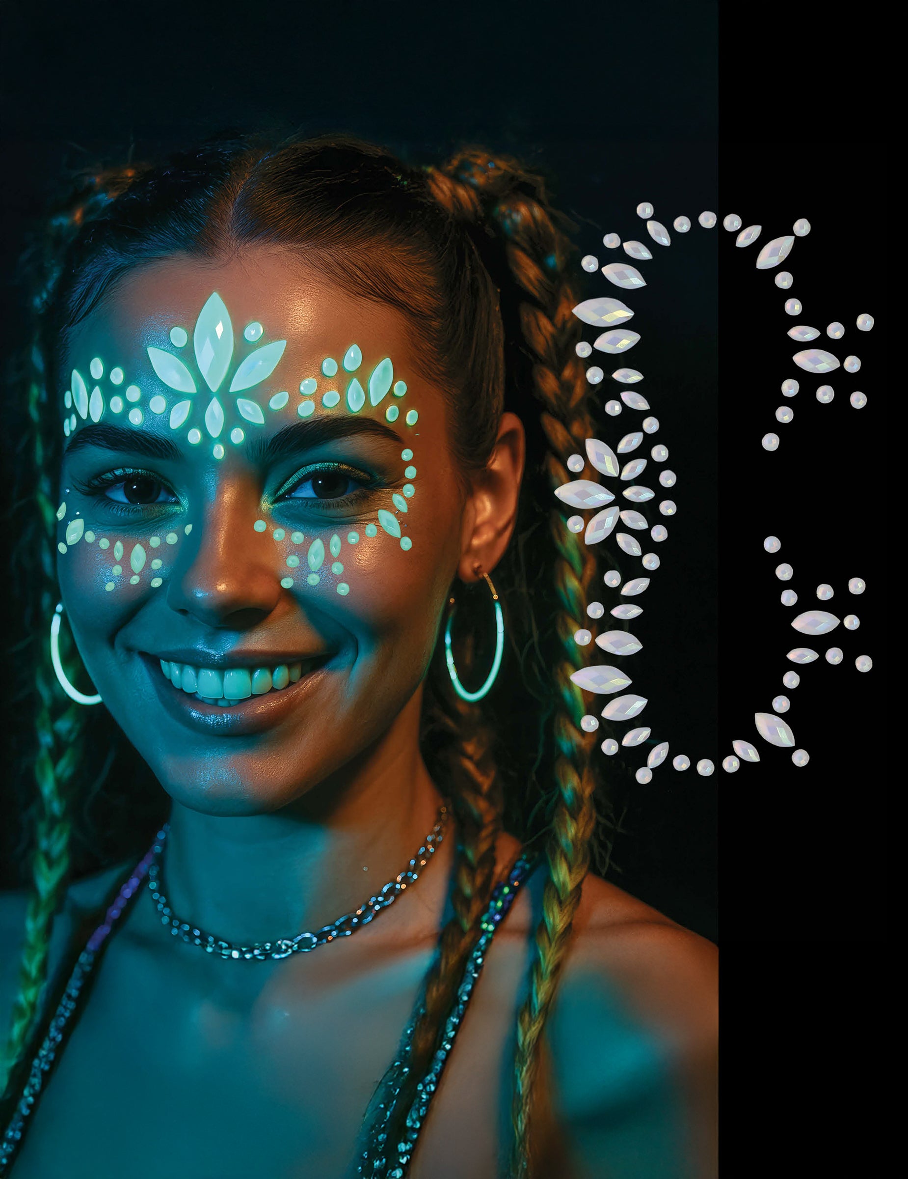 Идеални за фестивал, неонова парти вечер, карнавал или Хелоуин, тези самозалепващи се бижута са перфектният аксесоар за допълване на вашия артистичен грим.