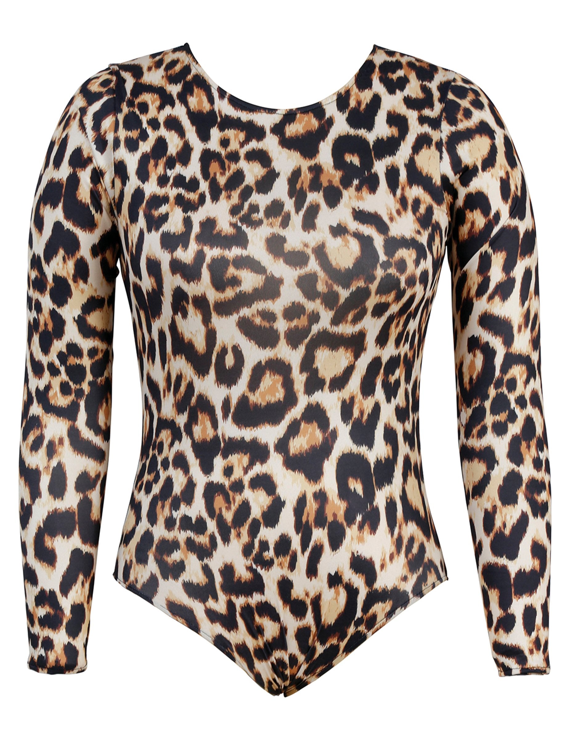 Осмелете се на дързост с този боди с дълъг ръкав с леопардов мотив, създаден за танци, кабаре или празнични вечери. Неговият прилепнал дизайн подчертава формите, докато животинският стил гарантира силна и неустоима визия. Перфектно облекло за изразяване на вашата бляскава и дива страна, независимо дали сте на сцена или на парти.