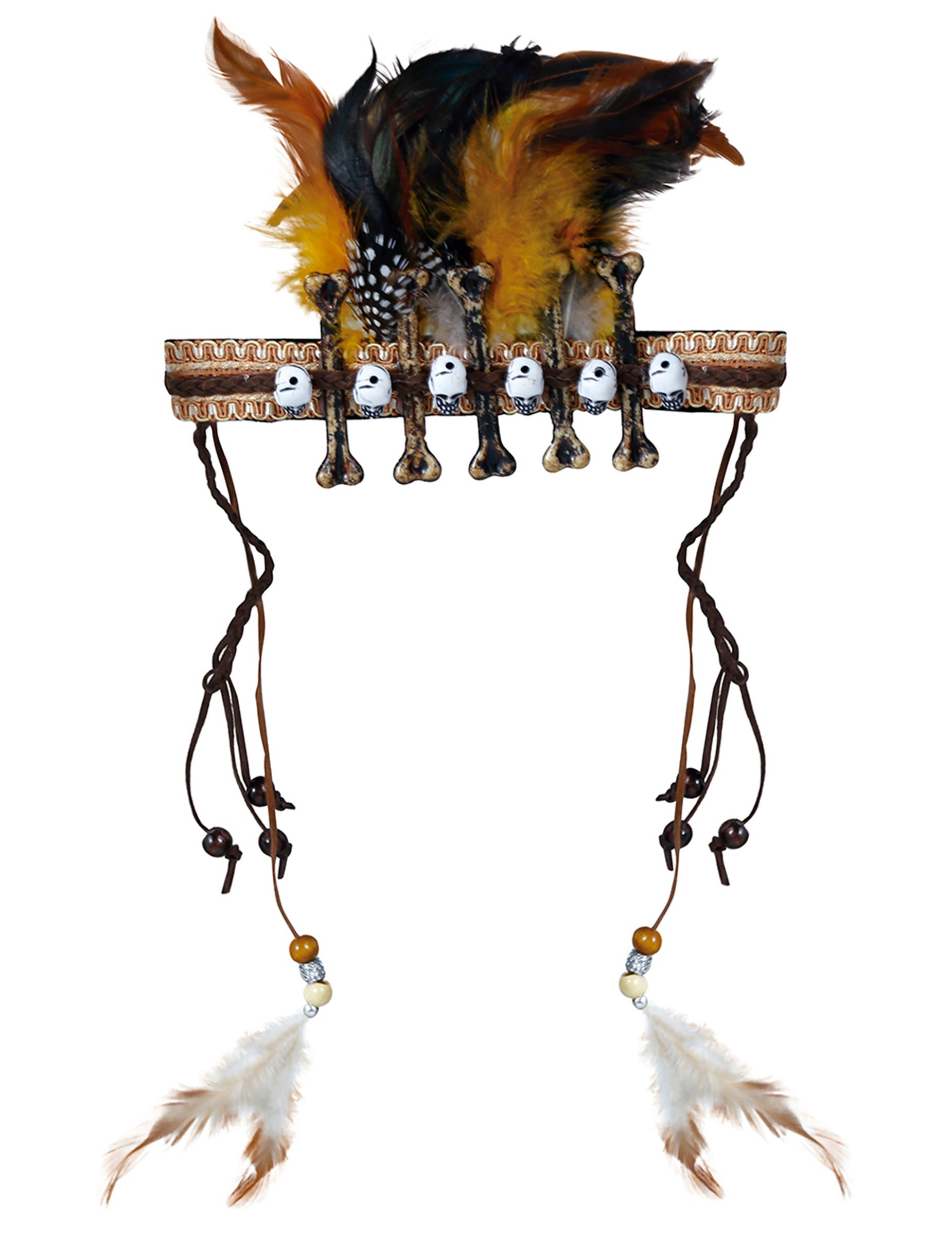 Завършете визията си с този вуду лента за глава за възрастни, украсена с цветни пера, мъниста и етнически детайли. Идеален за ролята на магьосник, шаман или вуду майстор, този аксесоар придава автентичен и мистериозен щрих на вашия костюм. Лек и удобен, лесно се адаптира и остава стабилен през цялата вечер.