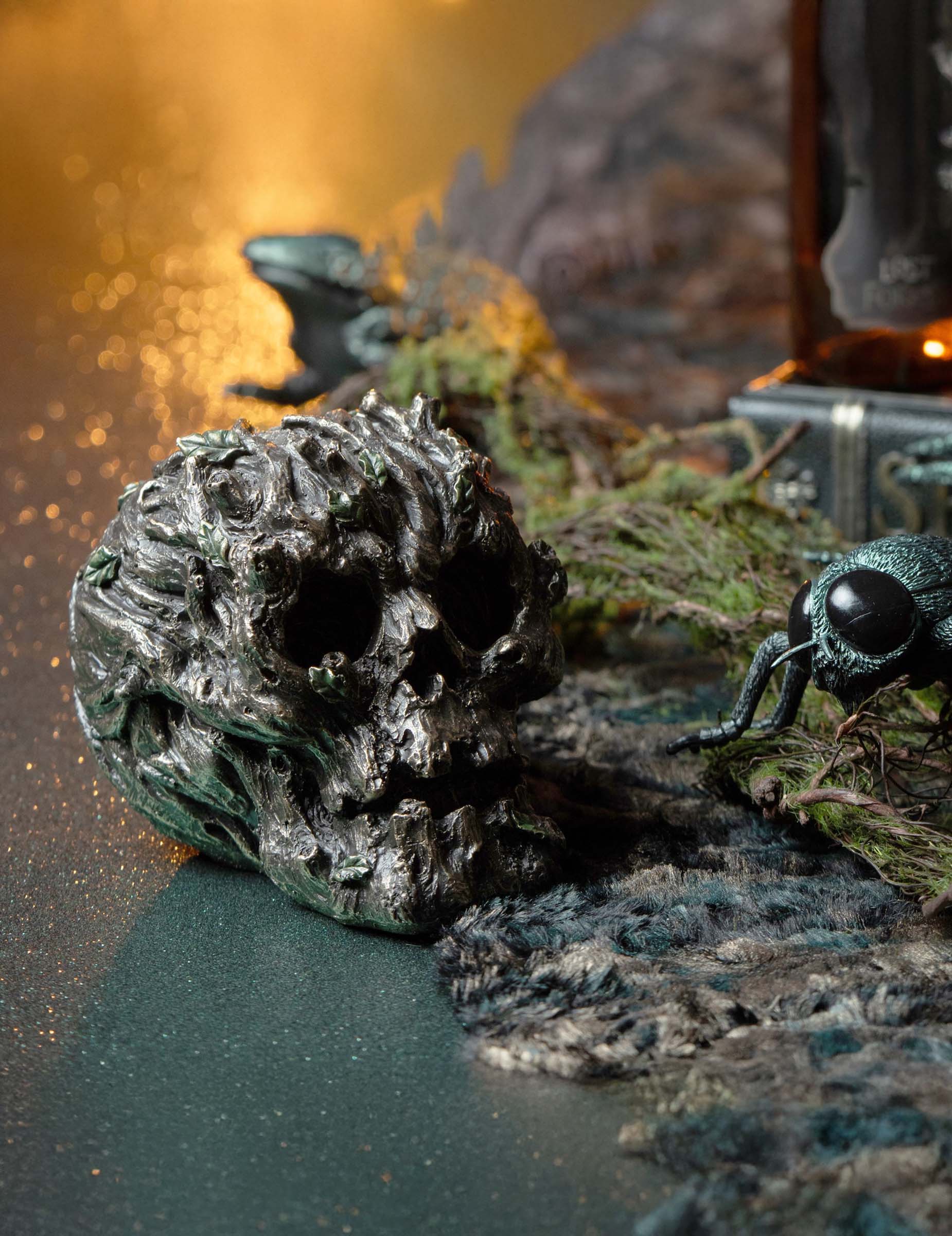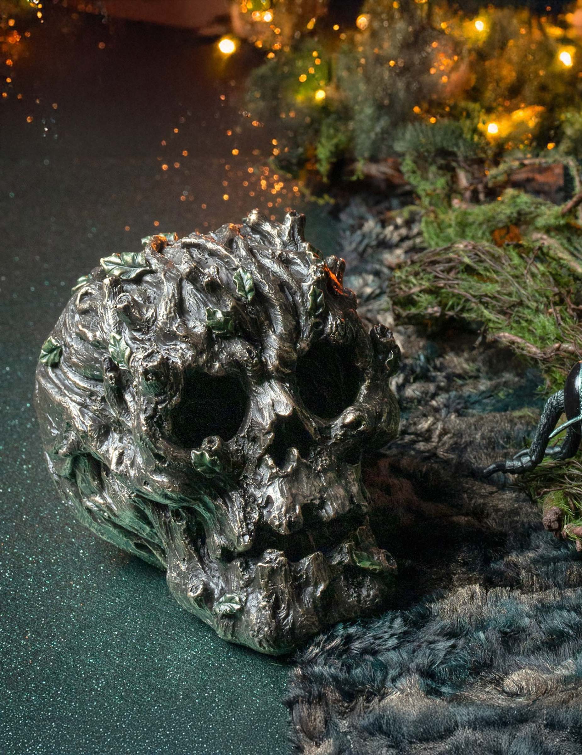Добавете щипка тъмна и природна фантазия към вашата украса с този череп от смола с дизайн, вдъхновен от вълшебната гора. С размери 14 cm, наподобява череп, слят с корени и листа, създавайки едновременно зловещ и оригинален ефект. Детайлната изработка и органичният стил го правят перфектен за вашите украси за Хелоуин, готически декори или тематична маса на тема природа и ужас.