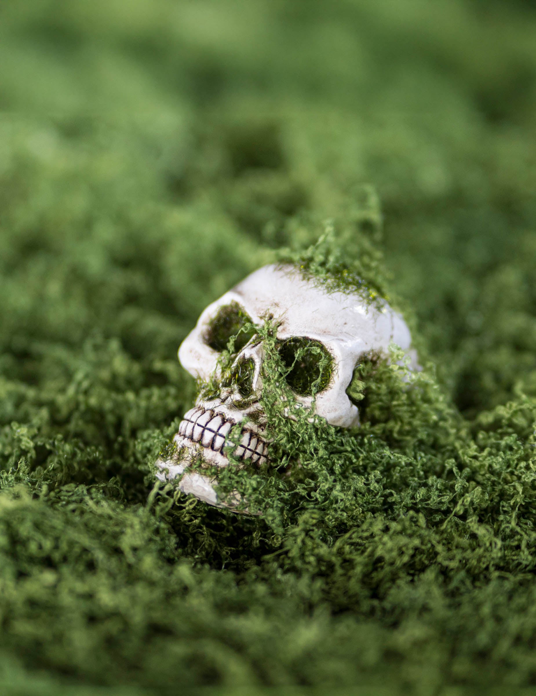 Добавете страховит и реалистичен щрих към вашата парти декорация с този череп от смола, украсен със зелени мъхове. С височина 7 cm, той имитира старинна кост, обрасла от природата – идеален за създаване на зловеща и мистериозна атмосфера. Компактен и здрав, лесно ще намери място във всяка ваша хорър сценография.