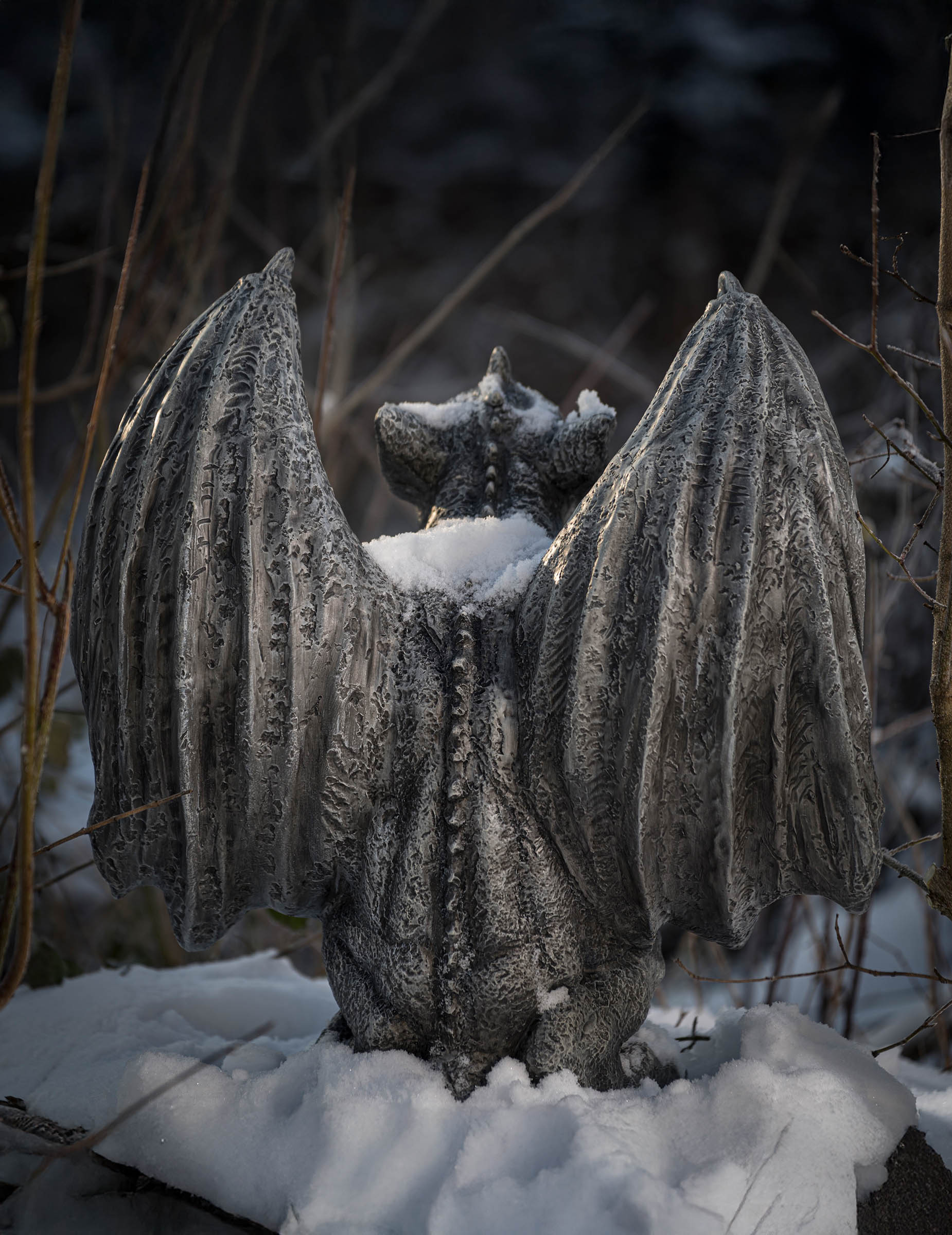 Добавете нотка мистерия и сила към вашата празнична украса с тази впечатляваща гаргойл статуя от магнезий с височина 54 cm. С разперени крила, пронизващ поглед и заплашителна осанка, тя е перфектният елемент за Хелоуин, готическо парти или за създаване на мистична атмосфера както във вашия интериор, така и в градината.