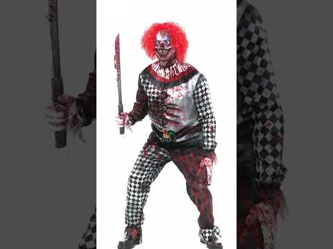 Изберете този пълен костюм на убиец-клоун, който комбинира яке, панталон, ръкавици и маска за завършена визия. Изцяло изработен от щампиран плат, той съчетава зловещи ромбовидни мотиви, кървави пръски и разрошена червена перука за ужасяващ ефект. Този костюм ви превръща в кошмарно създание, перфектно за да изплашите приятелите си.