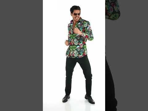 Изразете уникален стил с тази мъжка риза с мотиви Dia de los Muertos, изобразяваща цветни черепи и ярки рози. Удобна и елегантна, тя е подходяща както за тематично парти, така и за празнуване на Хелоуин или известния мексикански Ден на мъртвите.