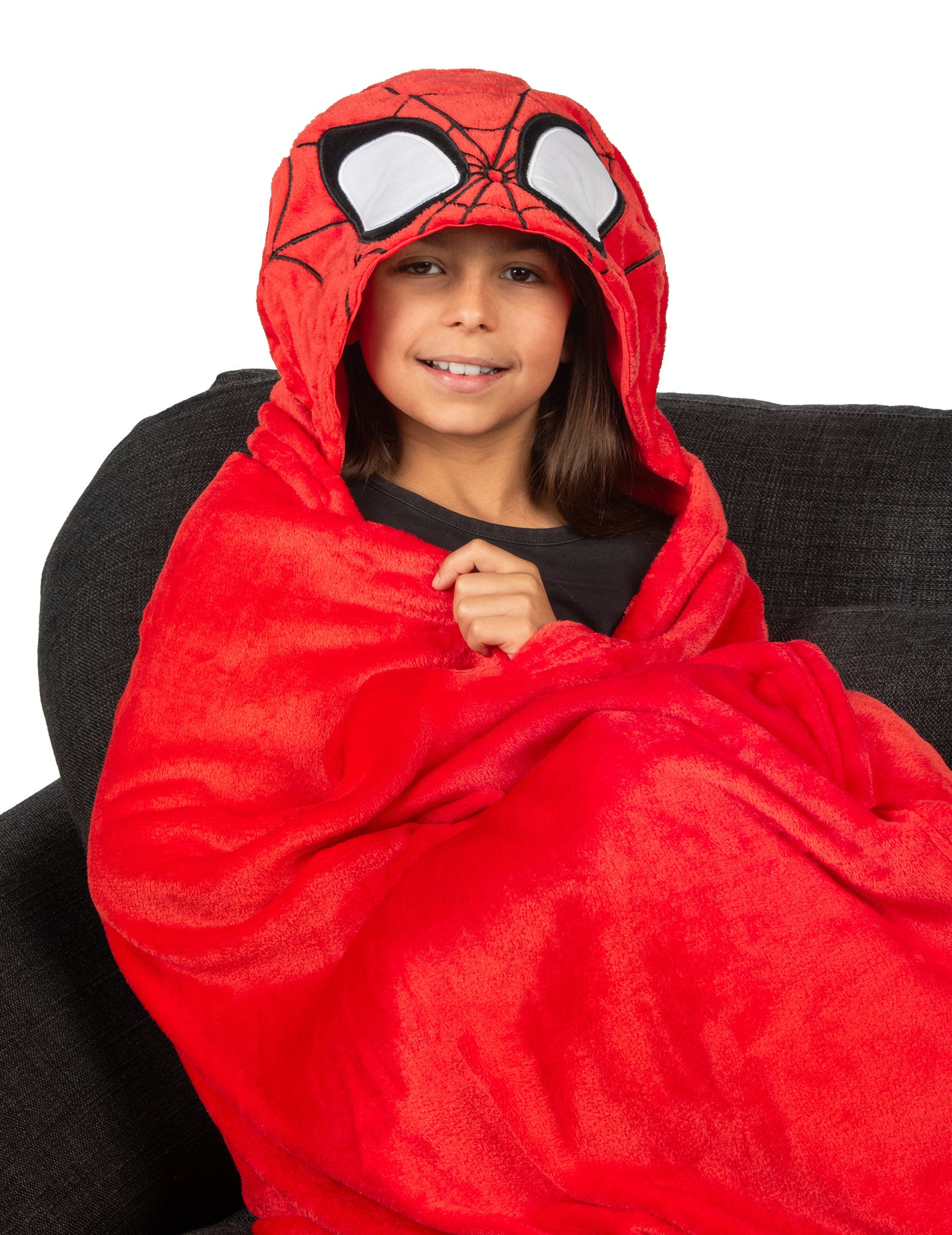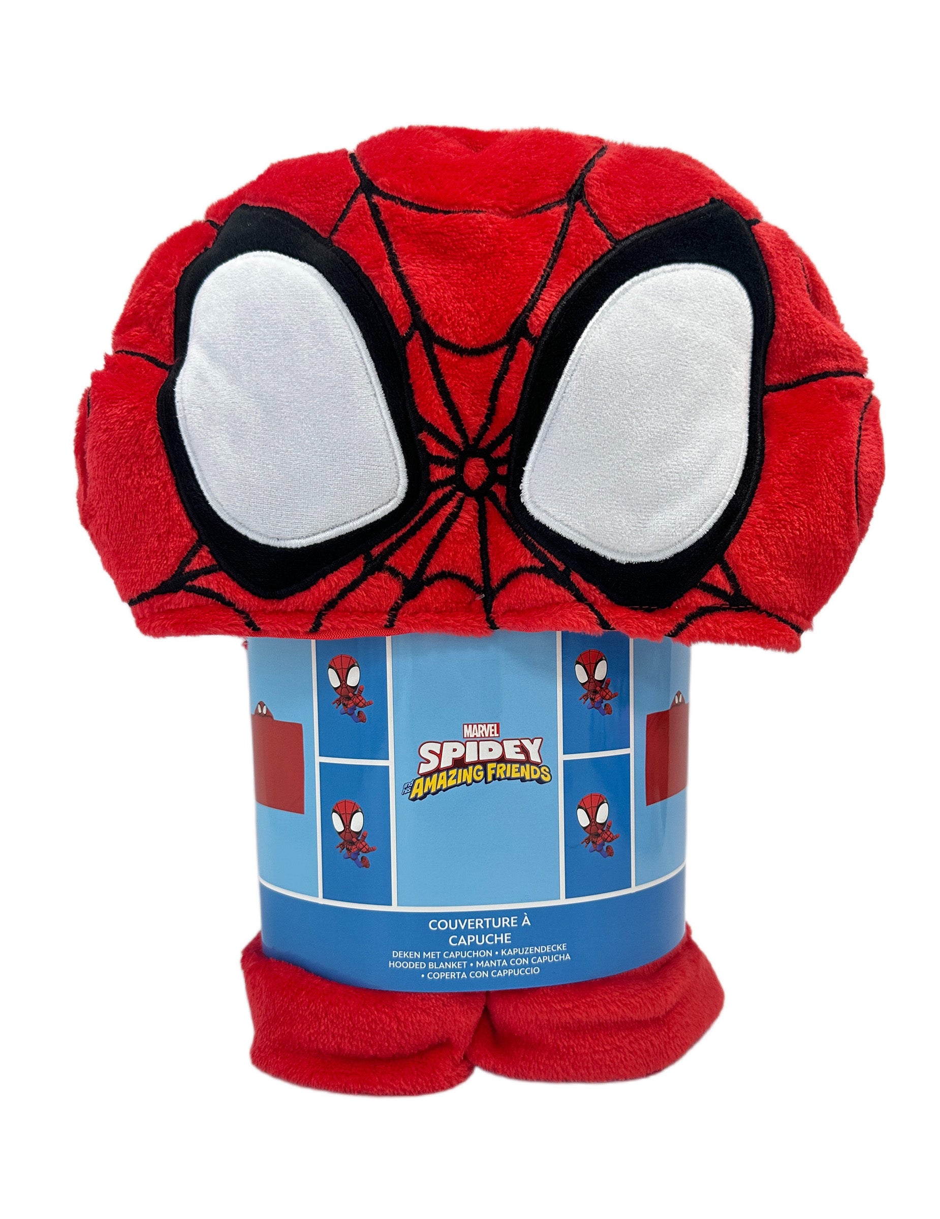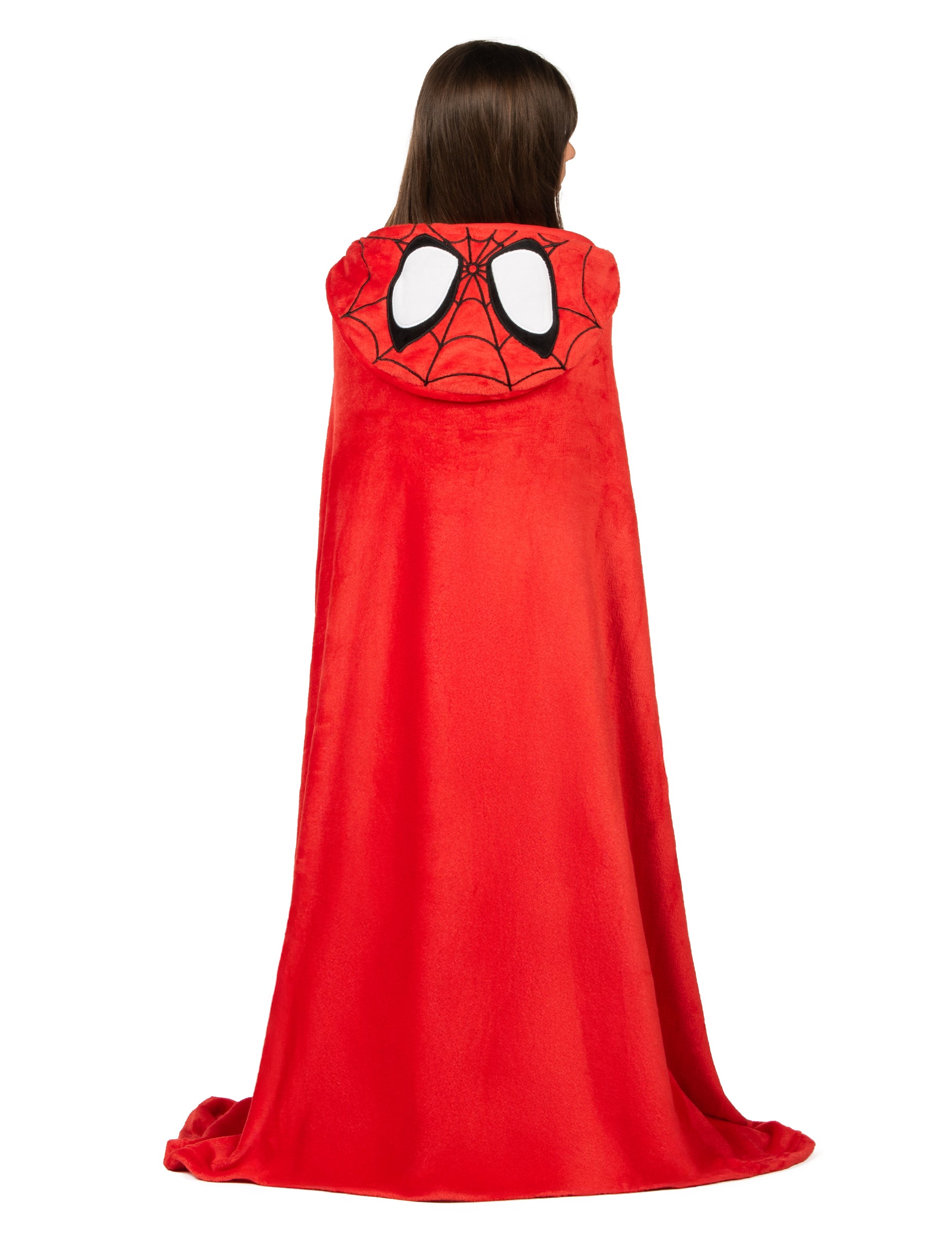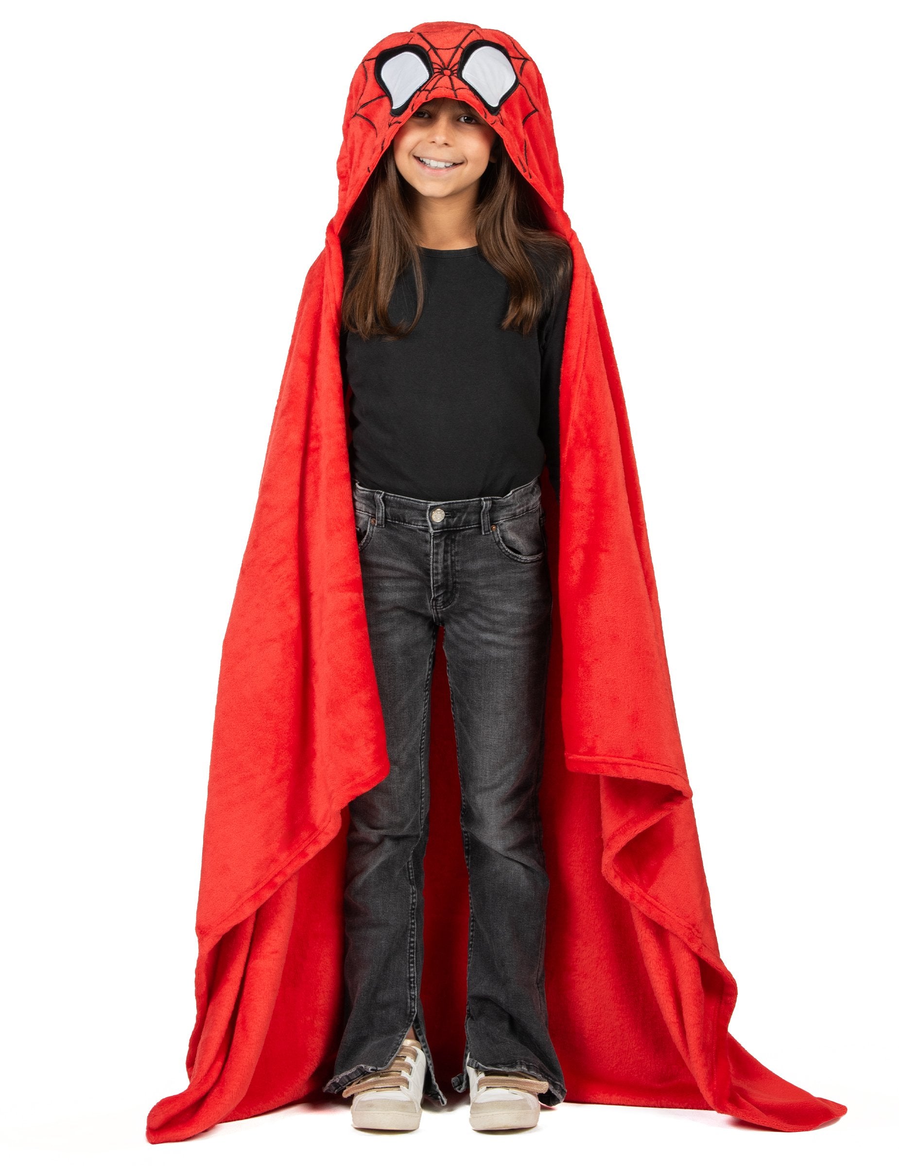 Този Spidey и неговите приятели™ костюм-плед с качулка от полар превръща всяка почивка в супергеройско приключение! С червената си качулка, украсена с емблематичните очи на Spidey, той обгръща детето в мек пашкул, готово да се изправи срещу студа... или да си представя велики мисии.