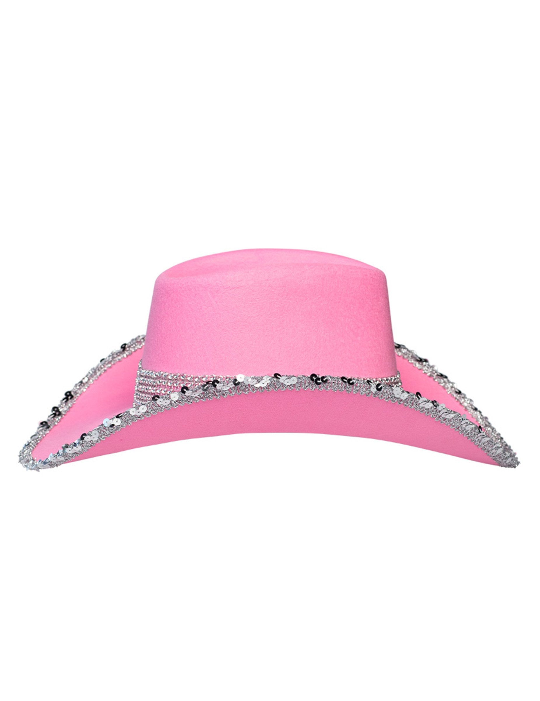 Тази светлорозова каубойска шапка за възрастни е перфектният аксесоар за моминско парти, фестивал на открито или празнична вечер. Мекият ѝ велурен ефект, блестящата лента, инкрустирана с кристали, и сребърната кант са едновременно елегантни и жизнени. Перфектен избор за завършване на модерен каубойски тоалет, независимо дали е за моминско парти, карнавал, Нова година или незабравимо събиране с приятели.