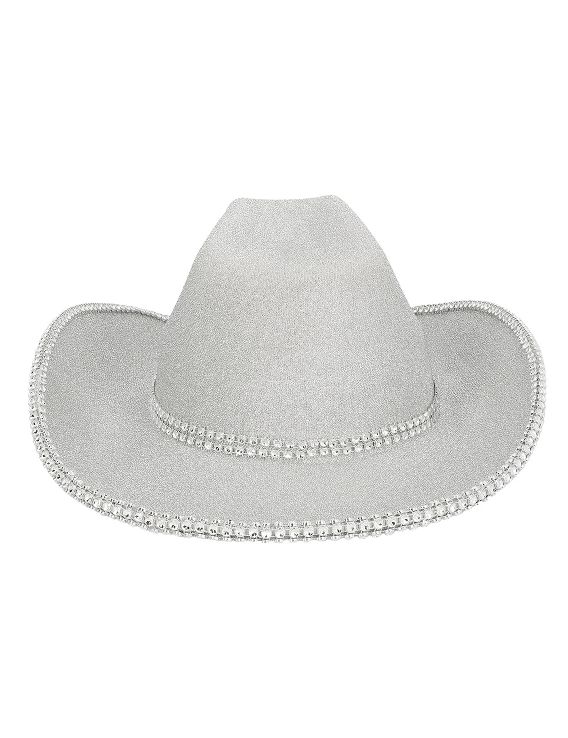 Тази сребърна каубойска шапка с пайети ще добави нотка блясък и забавление към вашите костюми. Украсена с блестящи кристали около периферията, тя съчетава западен стил с празничен и ослепителен вид. Идеална за костюмирано парти, карнавал или тематично събитие, тази шапка ще ви накара да блеснете ярко.