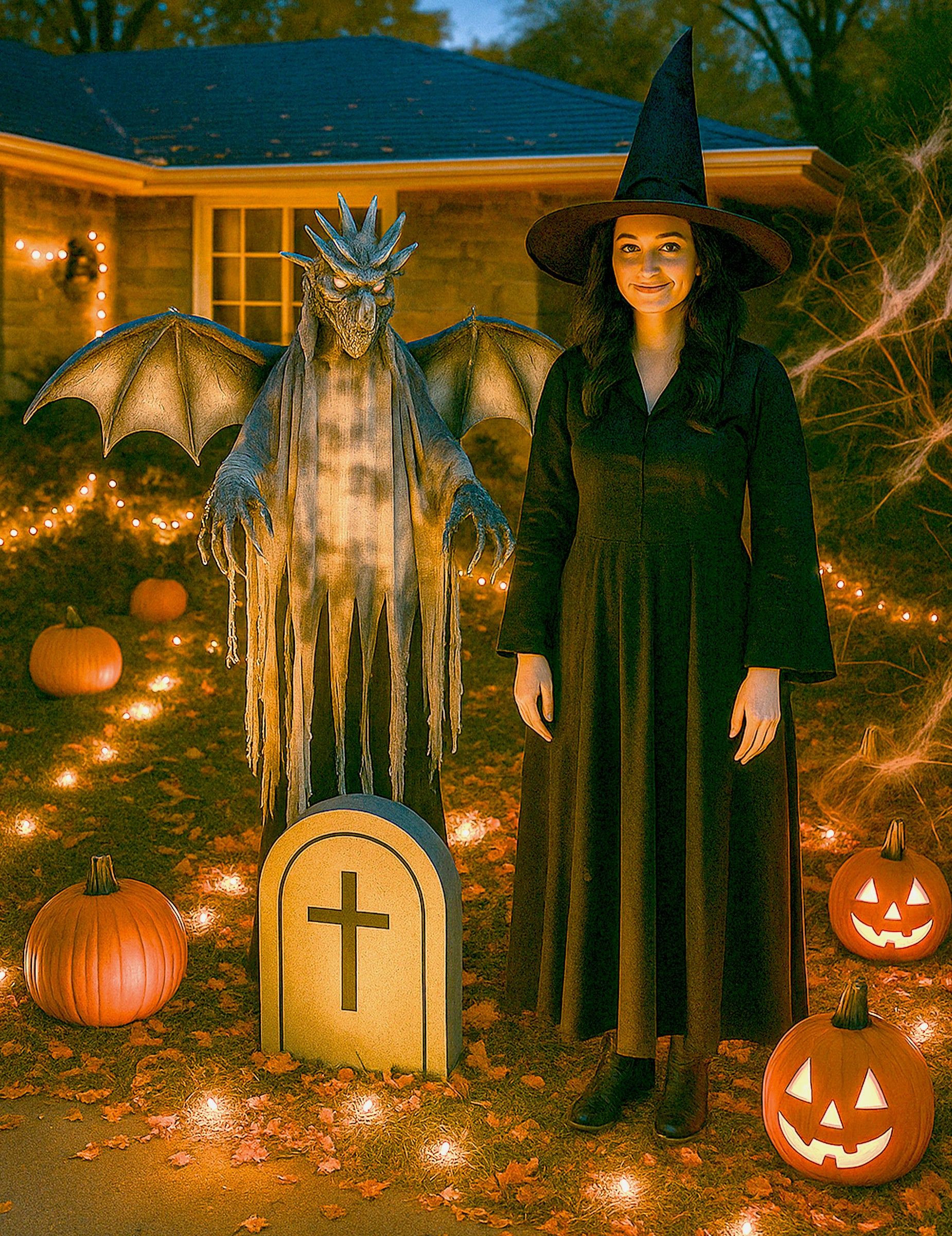 Добавете епичен щрих към вашето Хелоуин декорации с това 175 см анимиран гигантски дракон cmВнушителните му крила, ужасяващото му лице и светещите LED очи създават зрелищно присъствие.