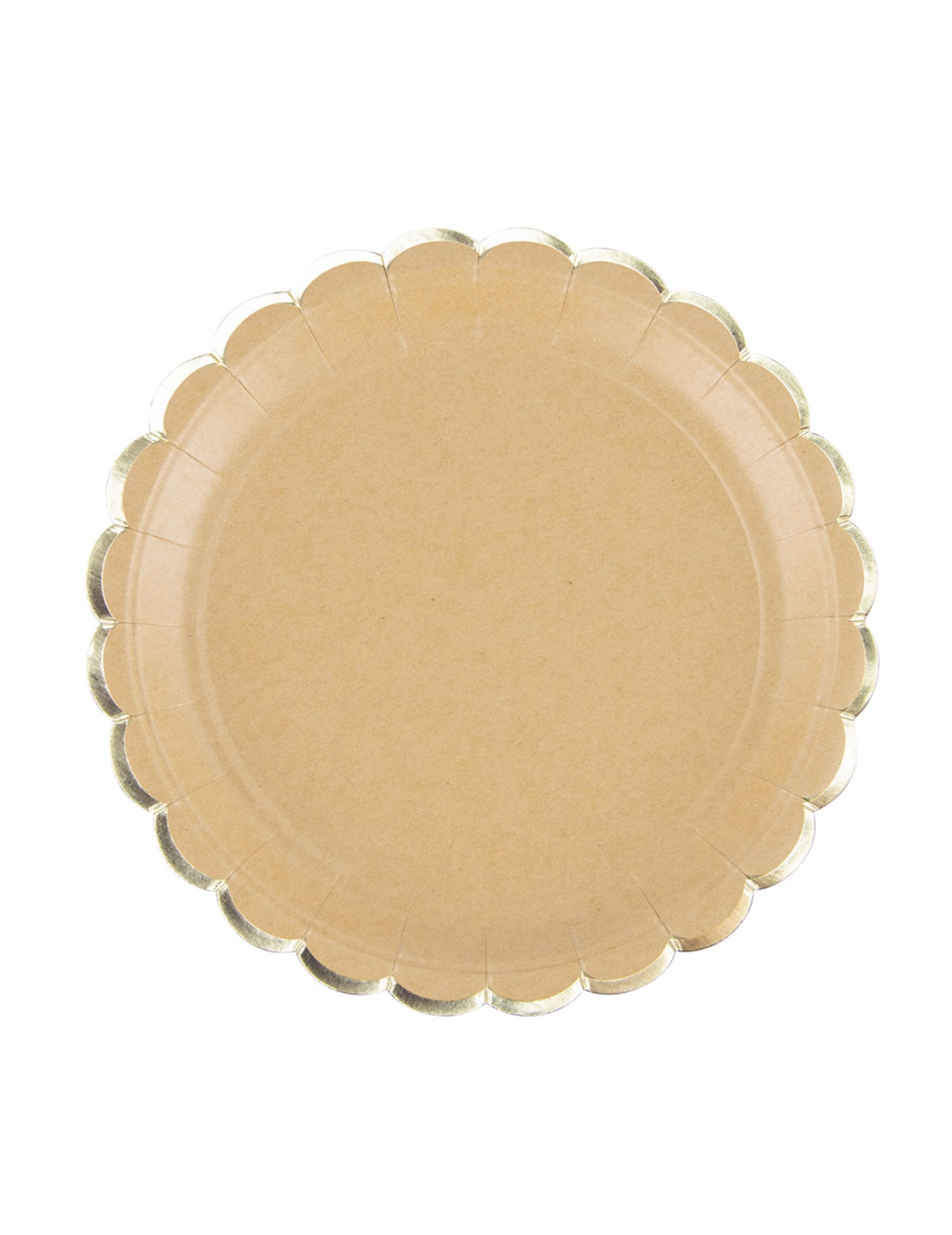 8 крафт и златни фестонирани картонени чинии, 23 см