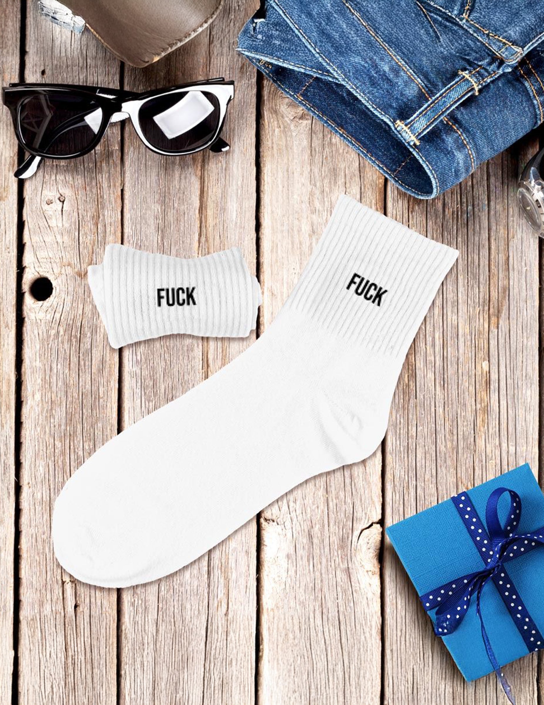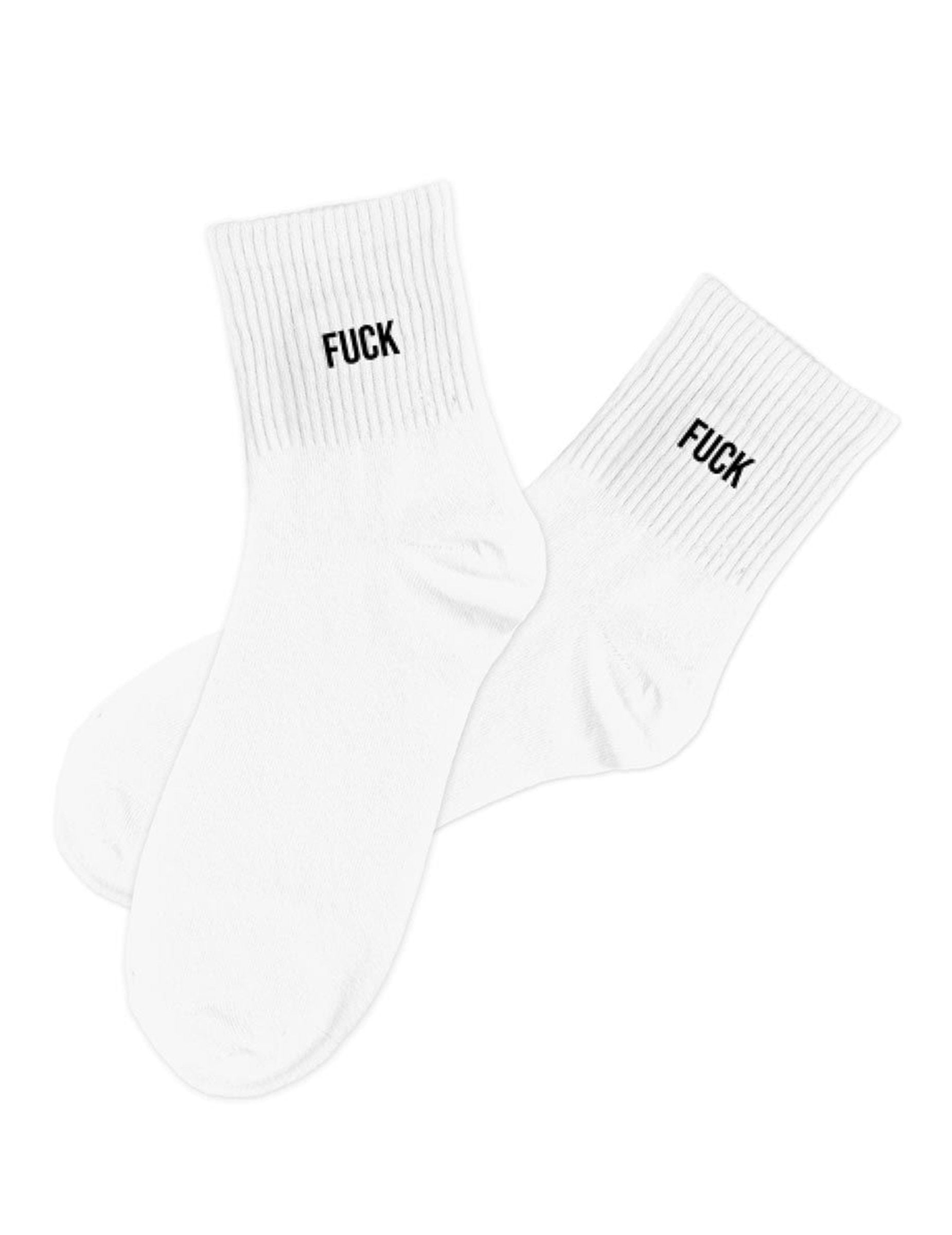 Направете впечатление с тези мъжки бели чорапи "Fuck", размери 39-45! Семпли и удобни, те се открояват благодарение на черния надпис "Fuck" на глезена, добавяйки нотка смелост и хумор. Мекият им, еластичен материал осигурява удобно прилягане през целия ден. Уникален и отличителен аксесоар, идеален за небрежна визия, забавен подарък или просто за да изразите свободния си дух със стил.