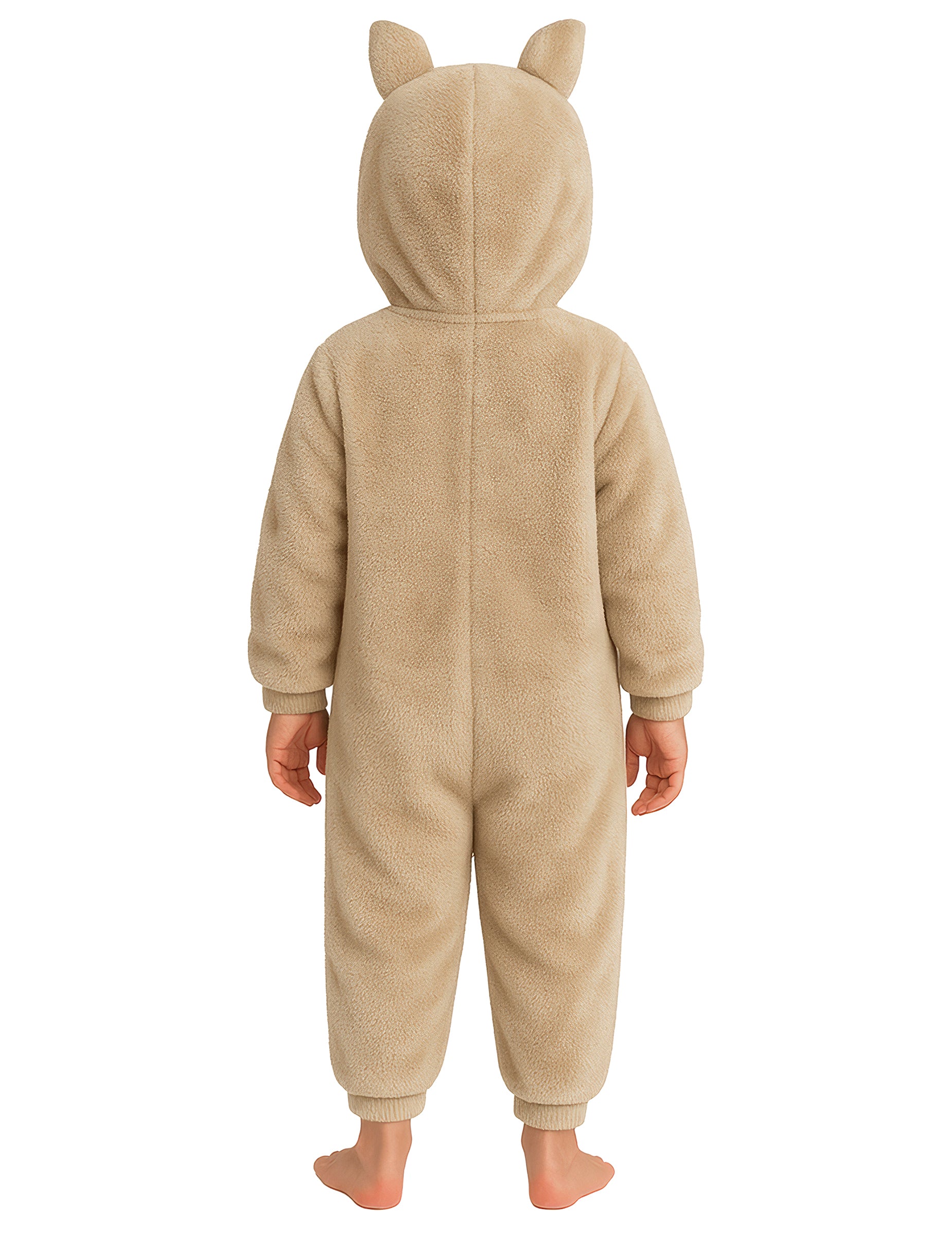 Този плюшен костюм на бежово чудовище за деца превръща най-малките в очарователно създание с палав поглед и миличка усмивка. Изключително мек на допир, този костюм от една част е изработен от плюшена и удобна материя, идеална за забавления без притеснения от студа.