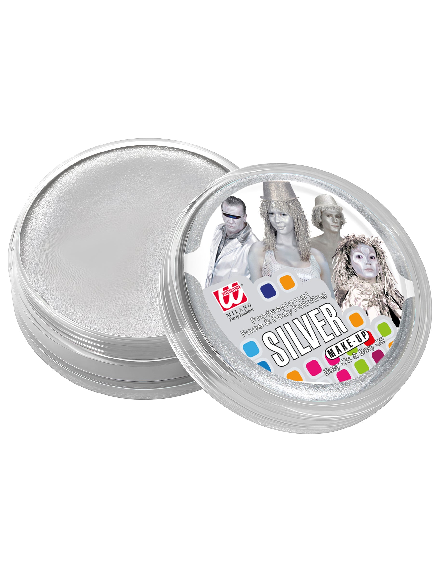 Тази 25-грамова кутия професионален сребърен грим добавя нотка светлина към вашите творения. Меката му, наслояваща се текстура се нанася лесно за гладко, блестящо покритие. Без парабени, подходящ е както за сценичен грим, така и за празнични трансформации. Благодарение на затварящата се кутия, лесен е за съхранение между употребите. Идеален за карнавали, представления или костюмирани партита, този сребърен грим предлага фин огледален ефект, който подчертава всеки детайл от вашето творение.