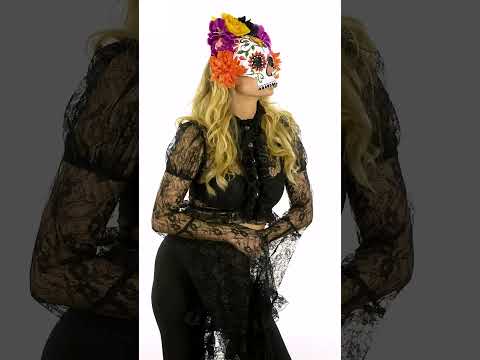 Тази маска Dia de los Muertos с цветя и пеперуди за възрастни е идеалният аксесоар, за да въплътите духа на този емблематичен мексикански празник. Фината пластмасова маска е красиво декорирана с цветни и детайлни мотиви, напомнящи прочутите традиционни калавери.