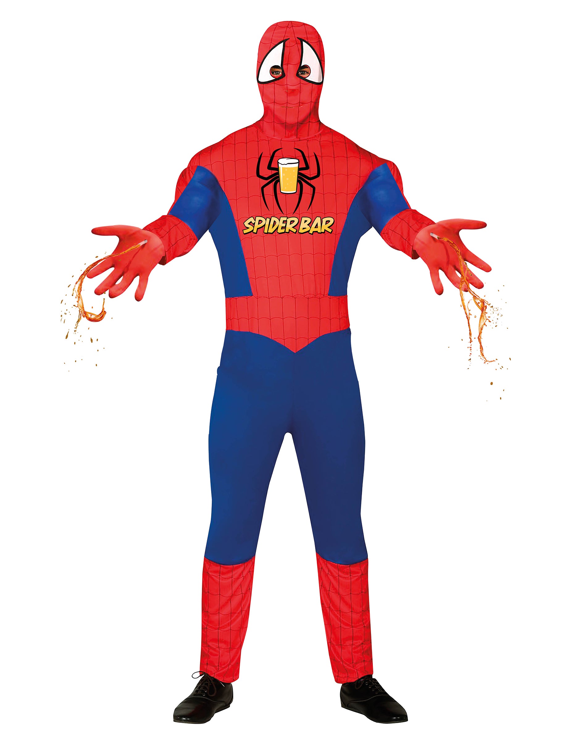 Този костюм Spiderbar с течностен изстрелвач за възрастни пресъздава известния човек-паяк с чувство за хумор. На гърдите надписът Spider Bar задава тона, докато вграденият изстрелвач придава забавен и интерактивен щрих на този костюм, изпълнен със самоирония.
