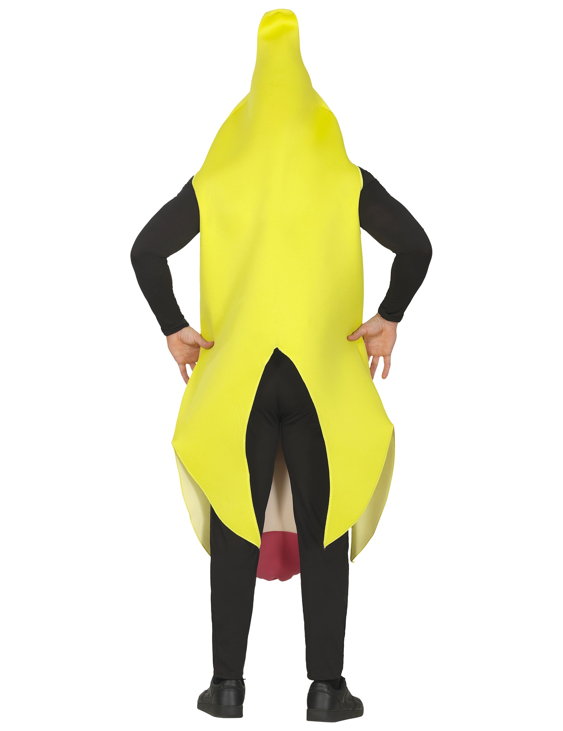 Този забавен бананов костюм за възрастни гарантира доза хумор. С форма на обелена бананa и закачлив детайл, той разчита на самоирония, за да разсмее всички. Изработен е от лека и удобна материя и се облича лесно върху дрехите ви.