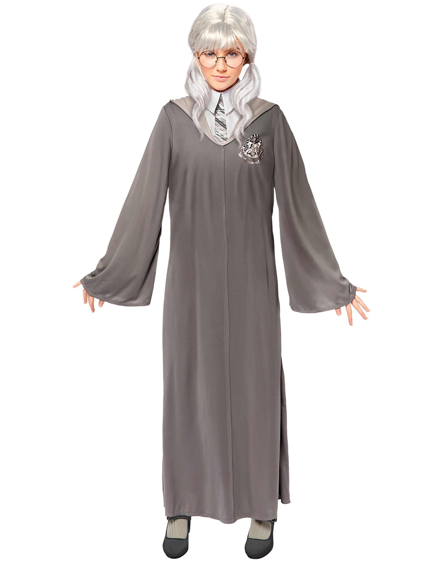 Този карнавален костюм на Мърмораща Миртъл Harry Potter™ за жени пресъздава чудесно мистериозния стил на прочутия призрак от Рейвънклоу. Дългата сива рокля, лека и с леко разкроени ръкави, идеално напомня ефирната визия на персонажа. Декорираният ѝ яка и емблемата придават характерния щрих на дома Рейвънклоу.