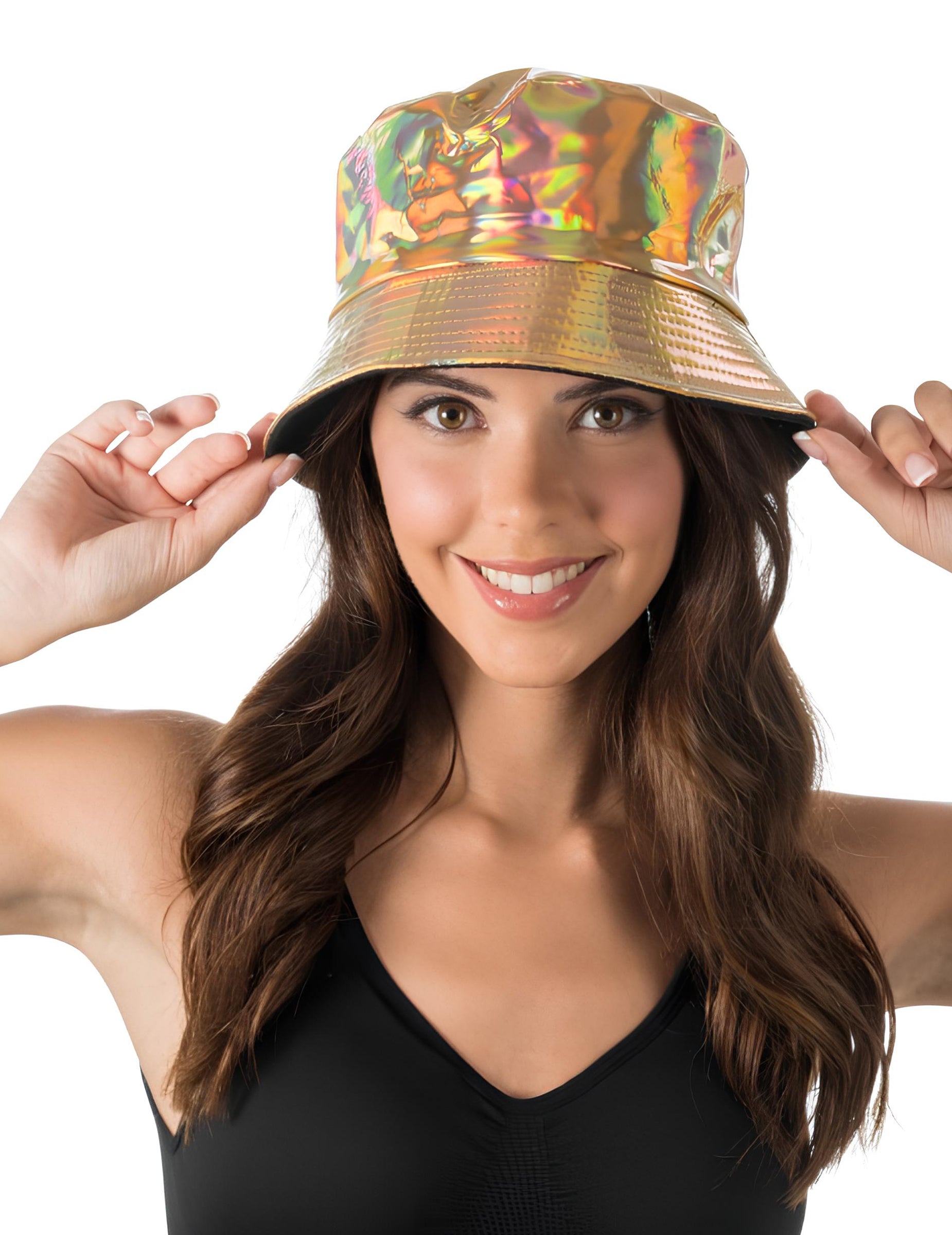 Тази златиста ирисираща боб шапка за възрастни предлага ярък цвят и блестящ ефект, който веднага привлича вниманието. Златистият ѝ оттенък с променливи отблясъци придава празничен стил, идеален за фестивали, летни партита и момински партита. Гъвкавата ѝ форма предпазва от слънцето, като остава удобна за носене през целия ден. Един семпъл аксесоар, който добавя бляскав акцент към лятната визия.