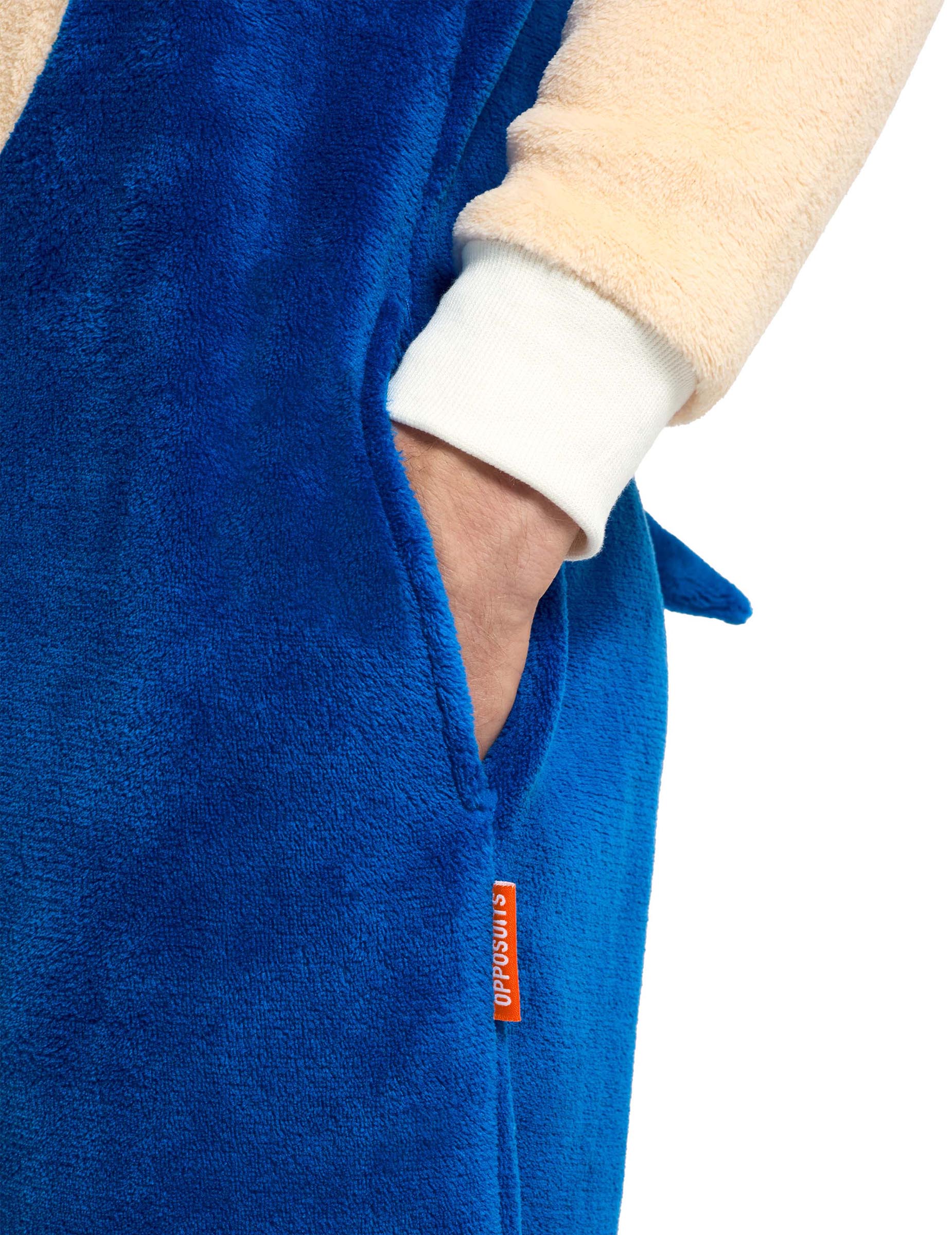 Този костюм на Соник таралежа™ за възрастни възпроизвежда емблематичното синьо на героя с голям бежов корем и качулка, украсена с малките му уши и характерните му шипове. Той предлага забавен и небрежен стил, идеален за релакс или за тематично парти, изпълнено с добро настроение.