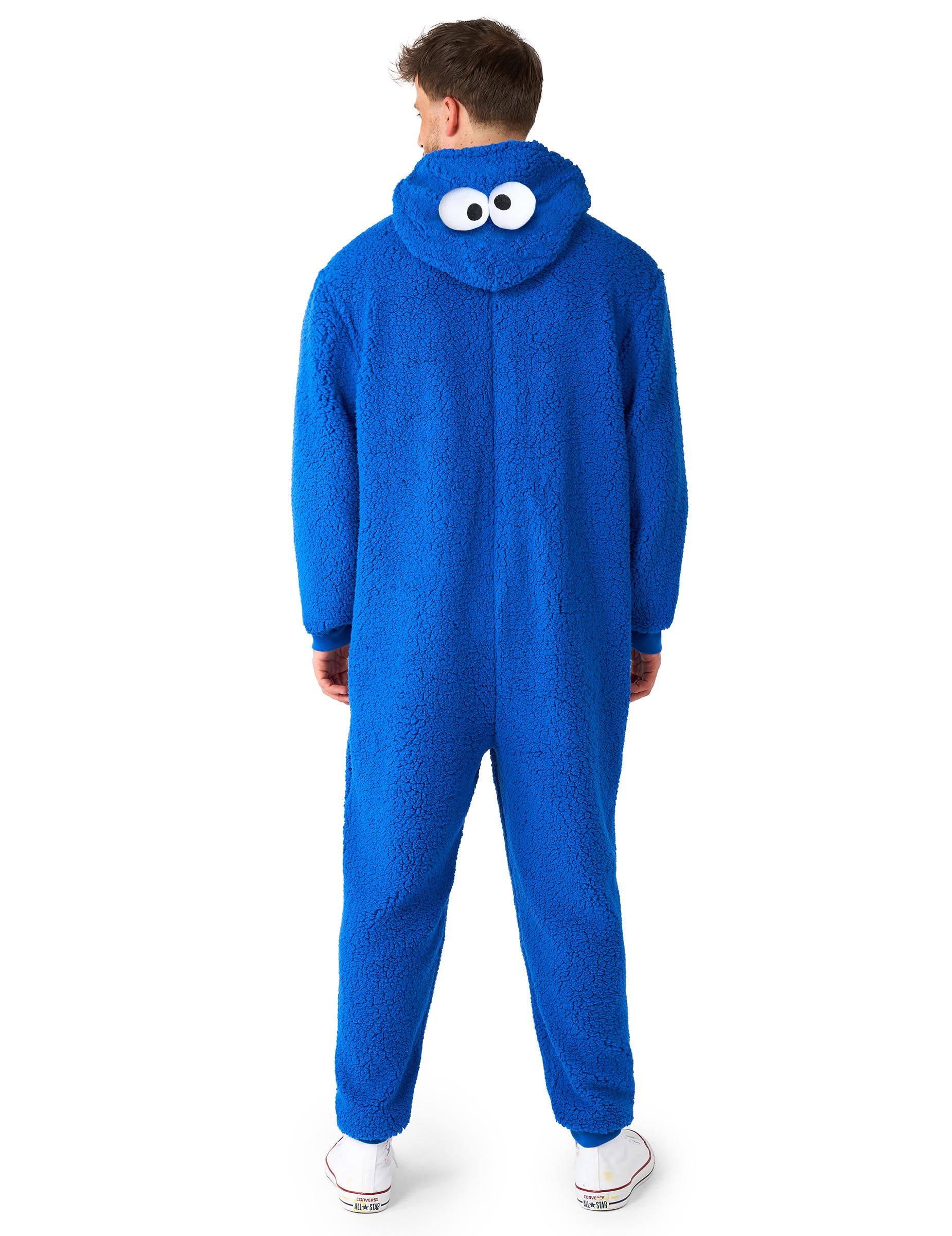 Този гащеризон Cookie Monster Sesame Street™ внася весело настроение с яркото си синьо и качулката, украсена с големите кръгли очи на известния герой. Той осигурява удобен и лек вид, идеален за релакс или за тематично парти, изпълнено с добро настроение.