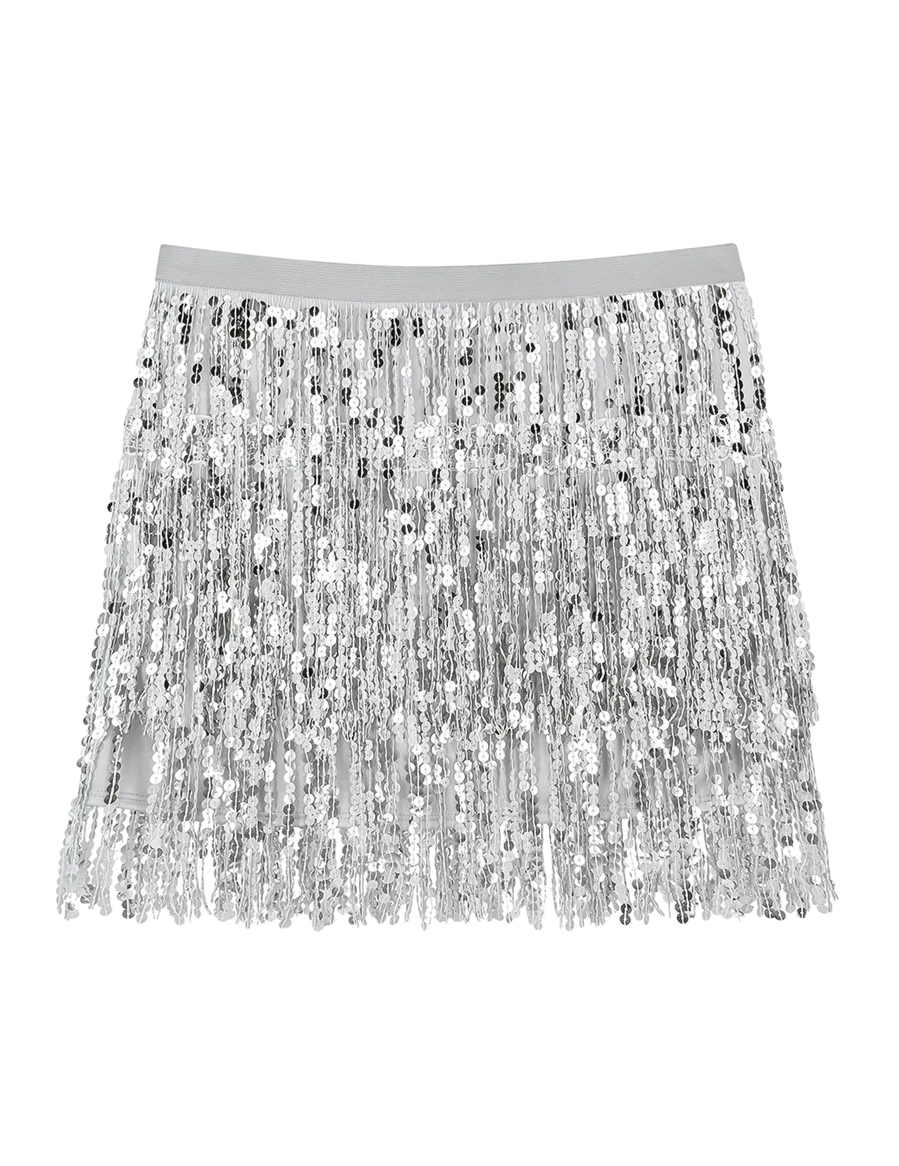 Тази дамска сребриста мини пола с пайети се отличава с леката си кройка, украсена с дълги блестящи ресни, които улавят светлината при всяко движение. Меката материя приляга на талията, без да стяга, докато сребристите пайети създават много елегантен светлинен ефект. Късата ѝ кройка придава модерен вид и подчертава металическите отблясъци, които оживяват всяка стъпка. Идеална за озаряване на парти визия с празничен щрих, тази сребриста пола с пайети е перфектна за фестивал или за посрещане на Нова година със стил, който привлича погледите и създава бляскаво настроение от началото до края.