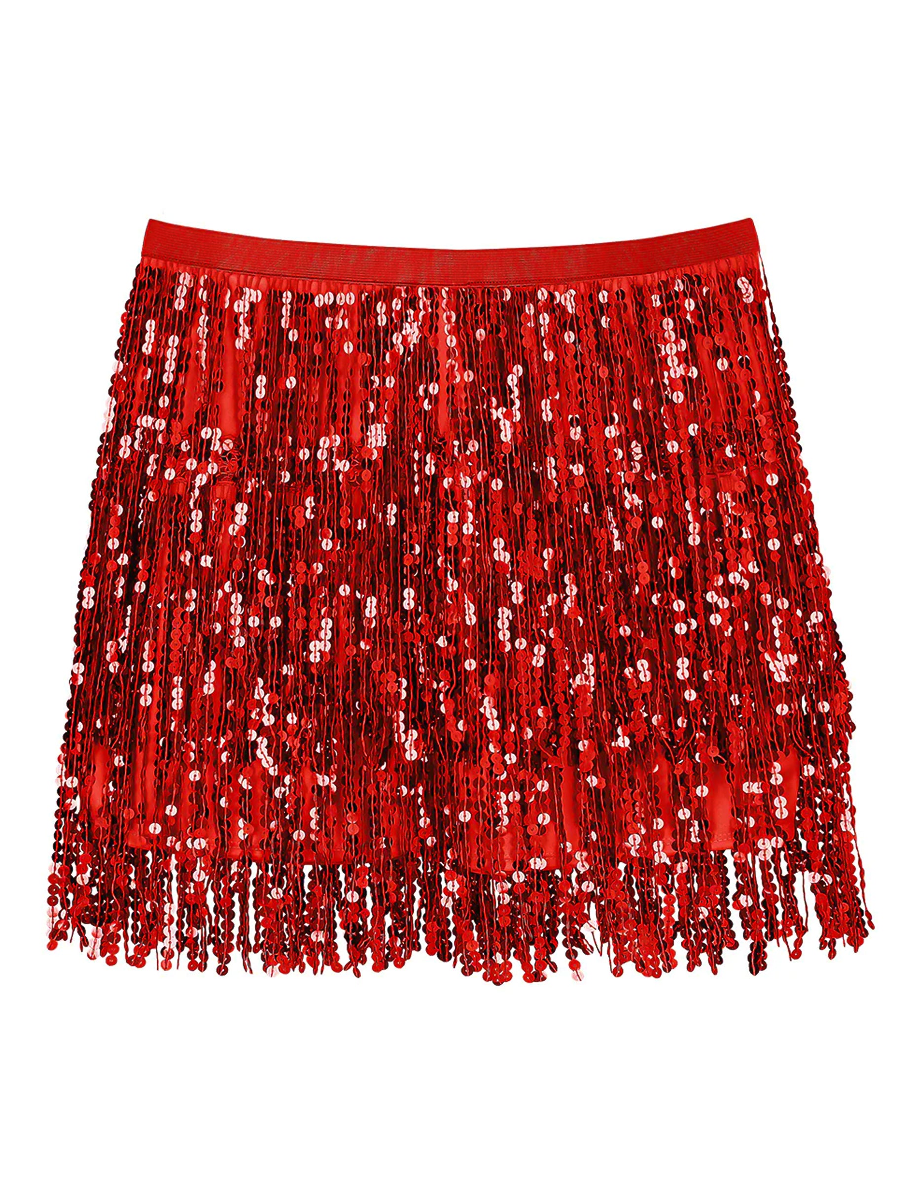 Тази дамска червена мини пола с пайети се отличава с яркия си цвят и пайетите, които отразяват светлината. Късата кройка подчертава силуета, а ресните добавят танцуващ и динамичен ефект. Цялостната визия придава празнично излъчване, което е идеално за парти облекло. Подходяща за празненство, рожден ден или всеки момент, когато искате да блестите и да се откроите.