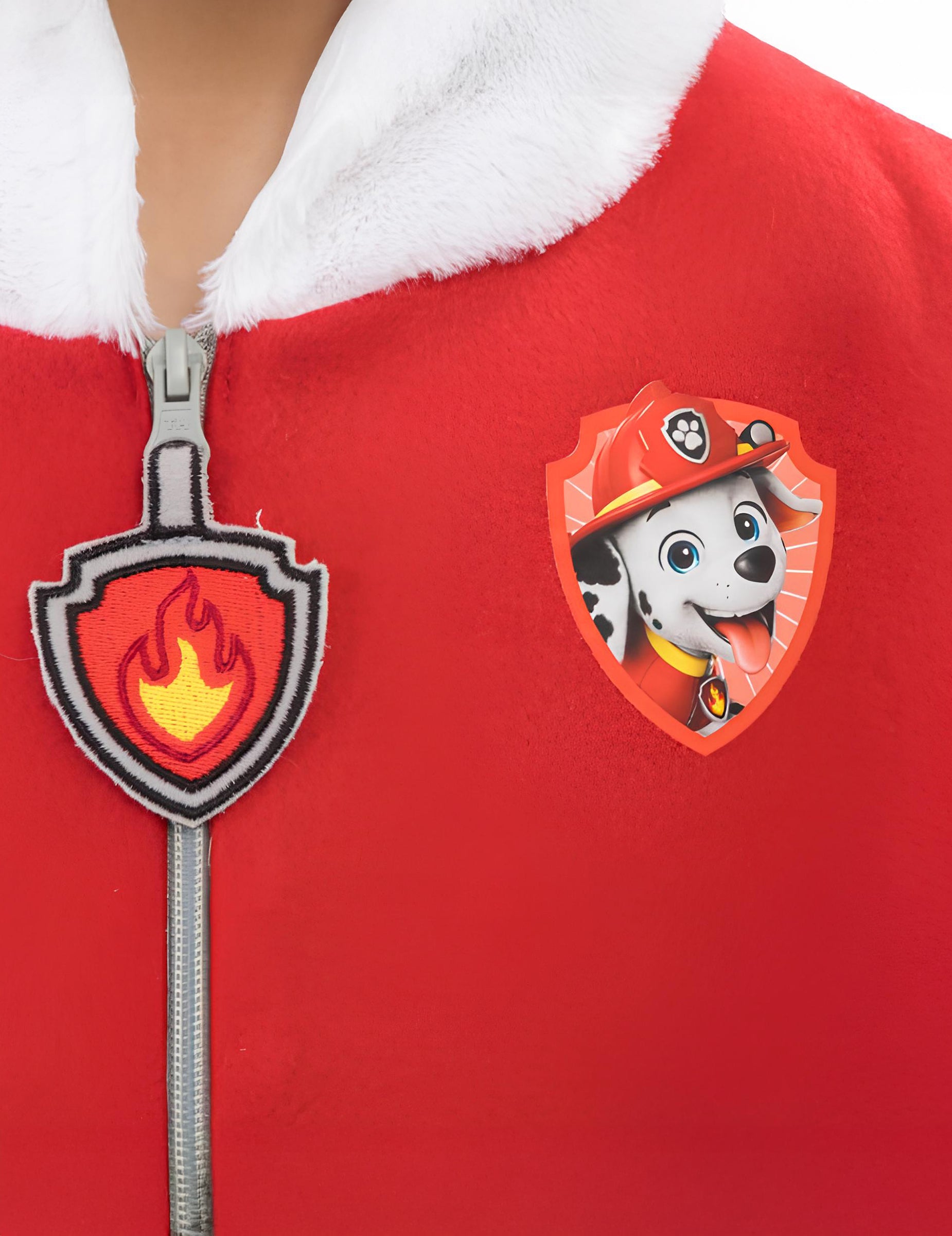 Този костюм на Маркъс от Пес патрул за деца е изработен с официален лиценз Pat'Patrouille. Този костюм позволява на вашето дете да приеме визията на известния далматинец пожарникар от сериала. Костюмът съчетава мека бяла материя с черни петна и червен горнище, украсено с отпечатан бадж и нарисувани джобове. Отваря се отпред с дискретен цип. Качулката изобразява главата на Маркъс с релефни уши, отпечатано лице и интегрирана червена каска към дизайна. Този костюм е подходящ за ежедневни игри, костюмирано парти за рожден ден или Карнавал.