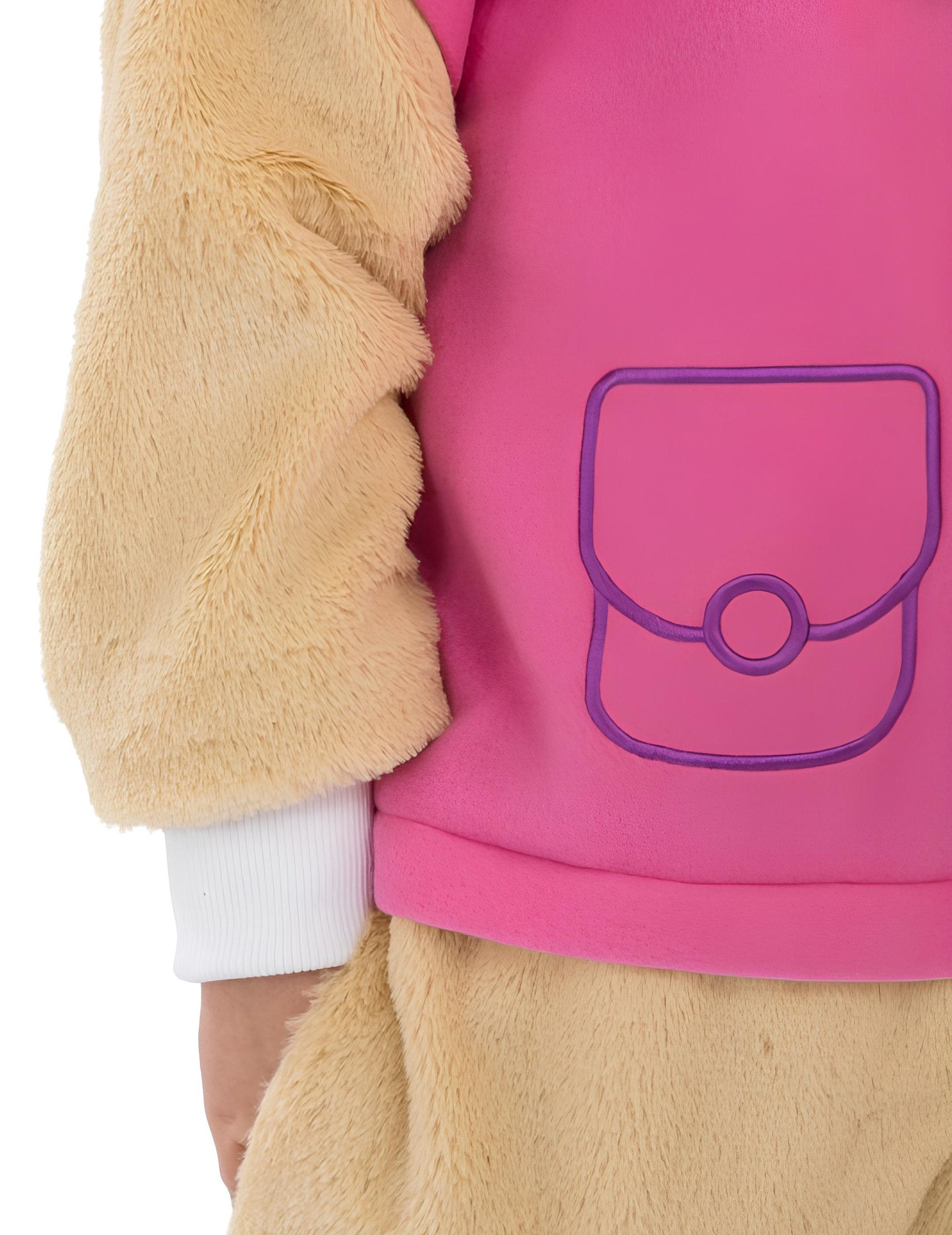 Този костюм Onesie Stella Пес патрул за деца е с официален лиценз Pat'Patrouille. Тоалетът позволява на вашето дете да приеме визията на известното малко кученце пилот от сериала. Гащеризонът е изработен от мека материя с леко стеснена бежова долна част. Горната част е розова, украсена с отпечатан бадж и нарисувани джобове. Костюмът се закопчава с цип отпред. Качулката изобразява главата на Стела с изпъкнали уши, отпечатани очила и лице с характерните ѝ черти. Този костюм е идеален за игри, парти с костюми или Карнавал.