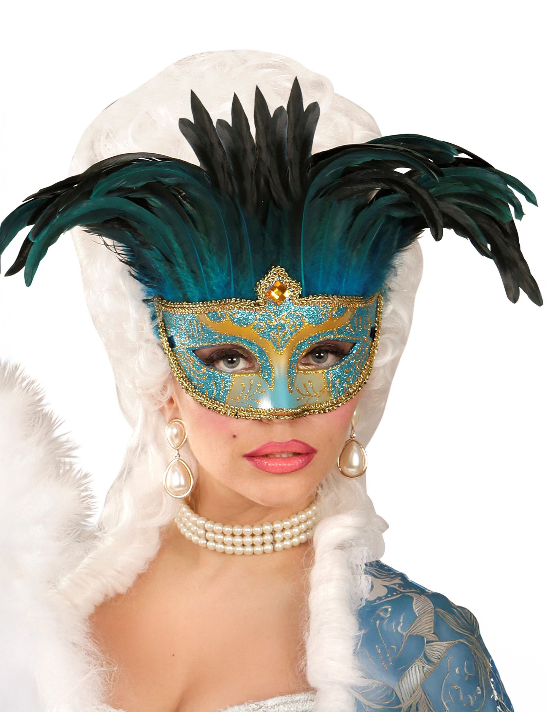 Loup vénitien bleu et or à plumes adulte