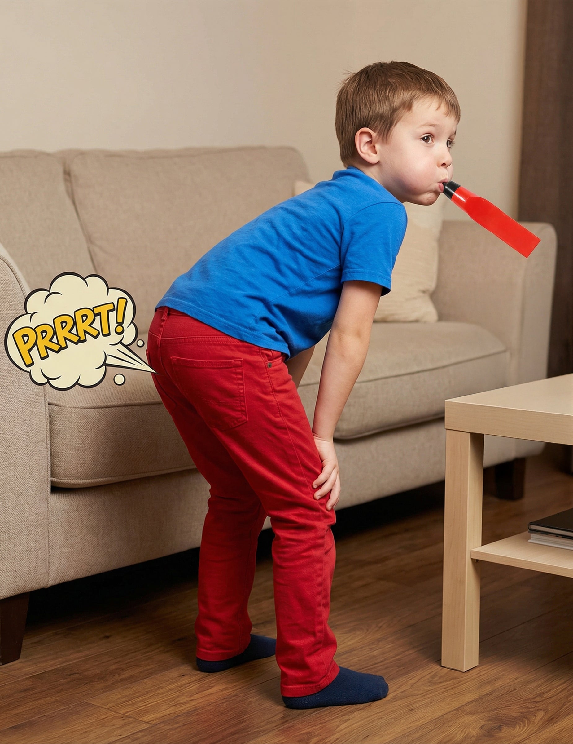 Този свирка-пърдялка издава звук, който имитира пърдене, когато духнете в нея. Звуковият ефект често изненадва и лесно създава забавен момент по време на проста шега.