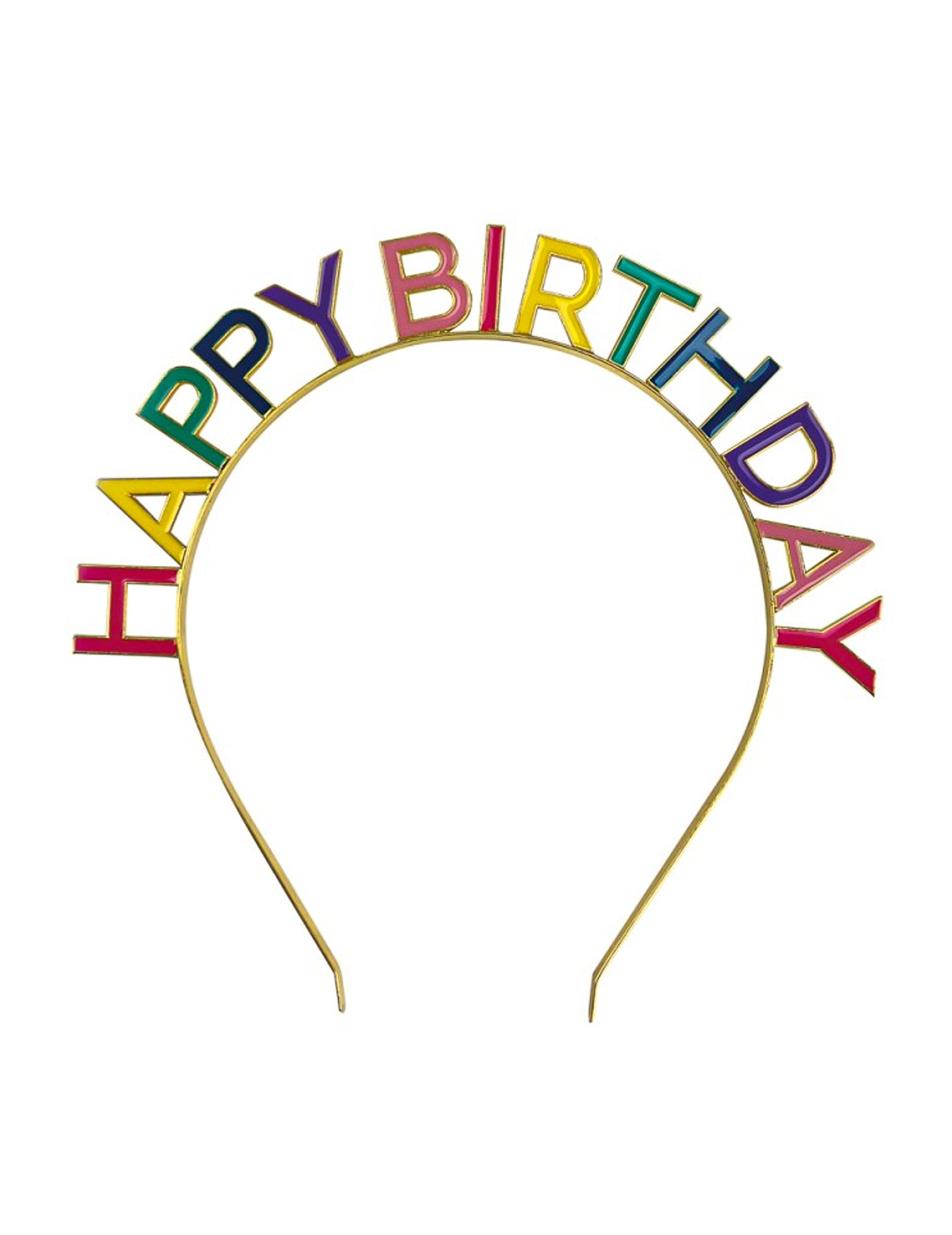 Многоцветната метална лента за глава „Честит рожден ден“ е подходяща за рожден ден, празнична вечер или тематично събитие.